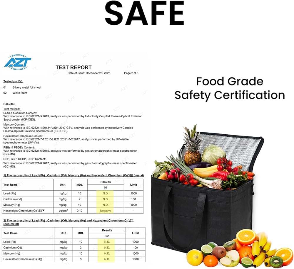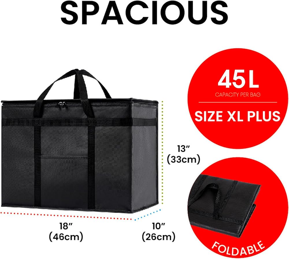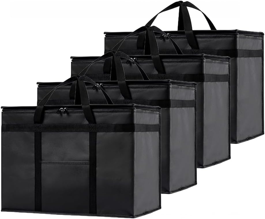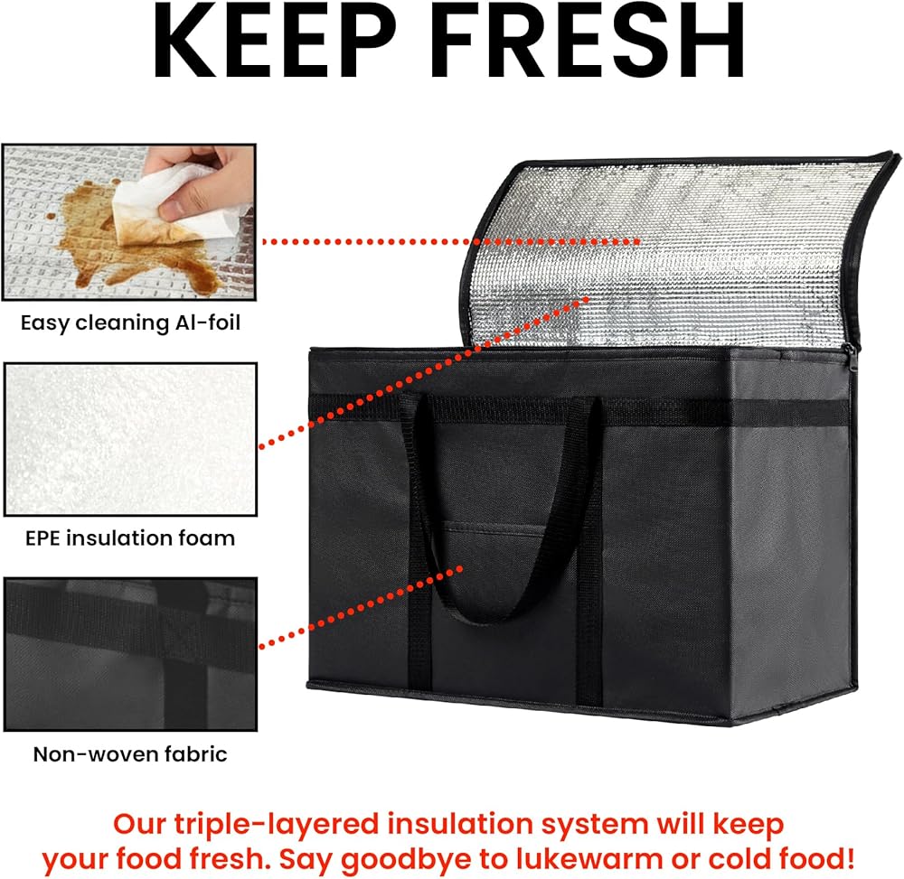 حقيبة تبريد معزولة من NZ home وجهاز تسخين الطعام (XL Plus، 4 عبوات) لتوصيل الطعام وتسوق البقالة مع جزء علوي بسحاب، أسود