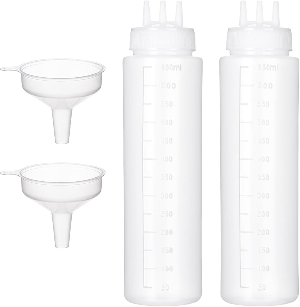 【توزيع فعال: 】تصميم ذو 3 فتحات في الأعلى، لصب التوابل بشكل متساوٍ، وقذف مريح وسريع، يتميز بفوهات سهلة القطع لتناسب وجزء علوي محكم يمكن فكه بسهولة ولكن لن ينفجر؛ أقماع مرفقة لملء الزجاجات، فقط ضعها على الزجاجات أو العلب، ثم اسكب الماء والنبيذ والصلصات والمربى أكثر.