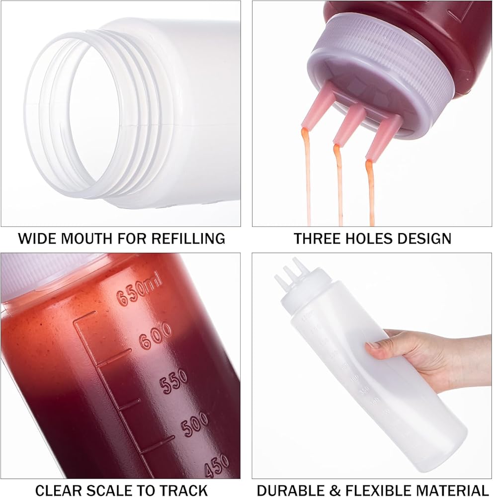 【جودة عالية】بلاستيك آمن وخالي من البيسفينول أ بنسبة 100%. زجاجة الضغط المكونة من 3 فوهات مصنوعة من بلاستيك عالي الجودة خالٍ من البيسفينول أ وبلاستيك البولي إيثيلين منخفض الكثافة. خفيفة الوزن ومتينة وآمنة للاستخدام. متينة للاستخدام وسهلة التنظيف.