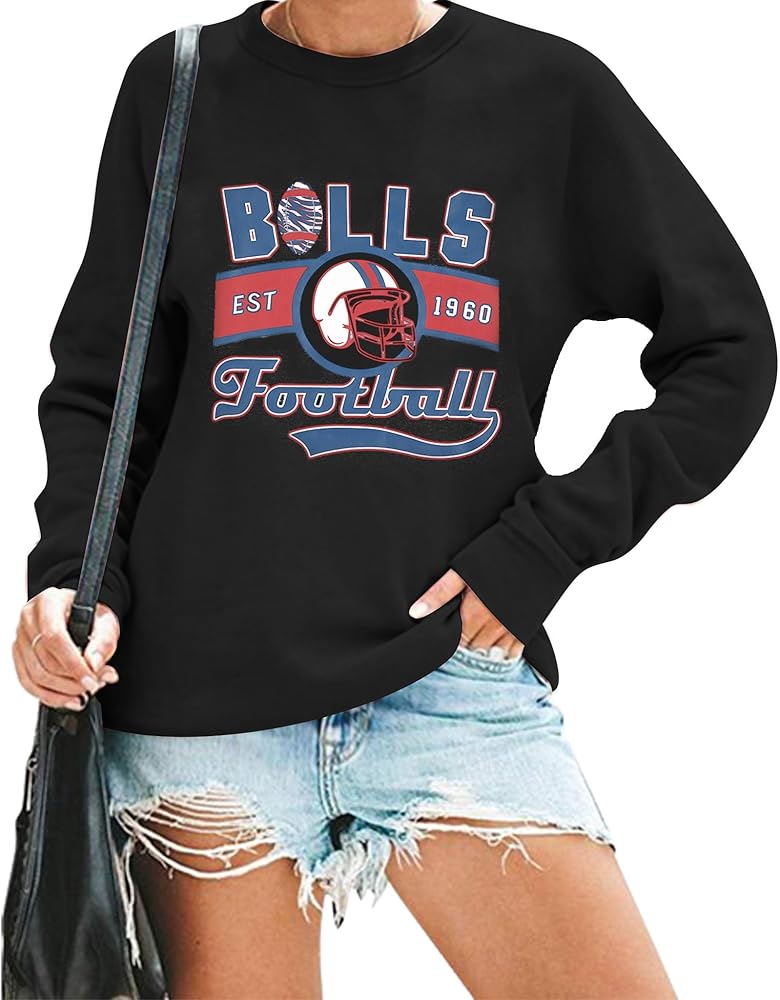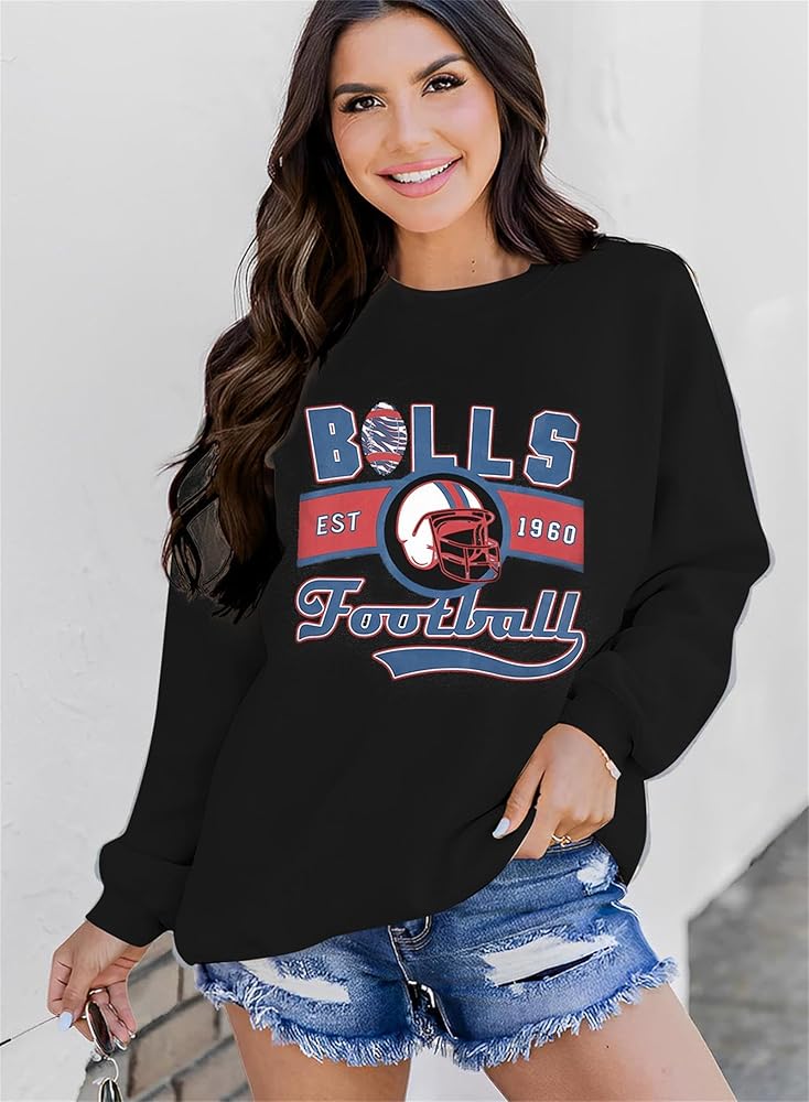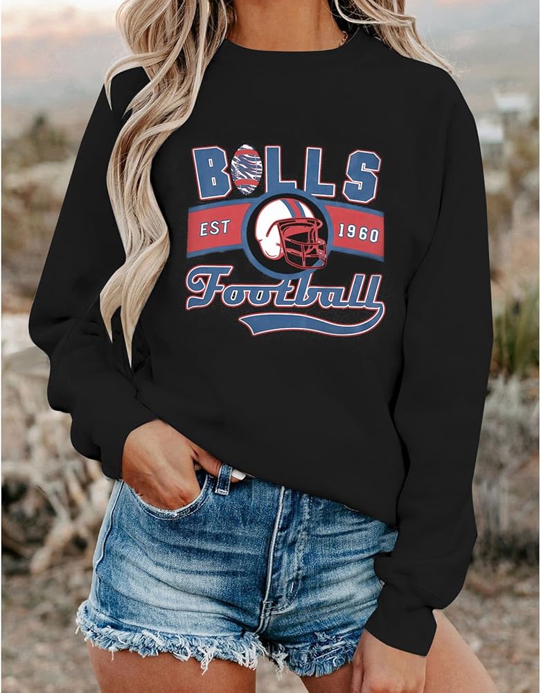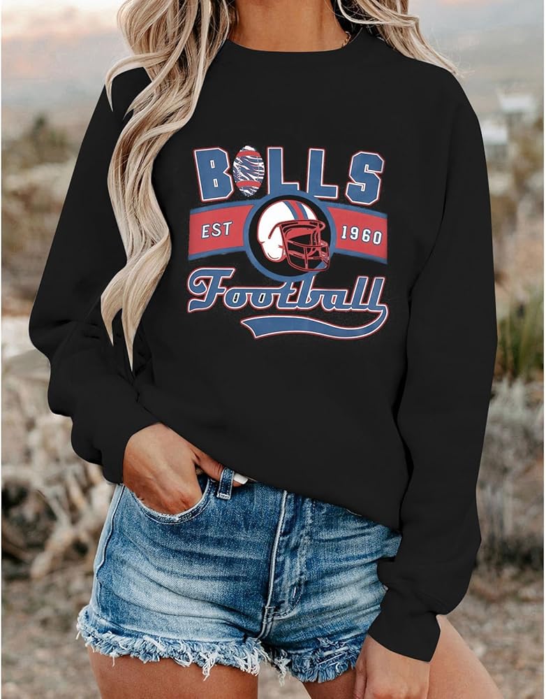 سويت شيرت JINTING لكرة القدم للسيدات يوم اللعبة: تي شيرت مطبوع عليه حروف كرة القدم، قميص بأكمام طويلة لمحبي فريق كرة القدم