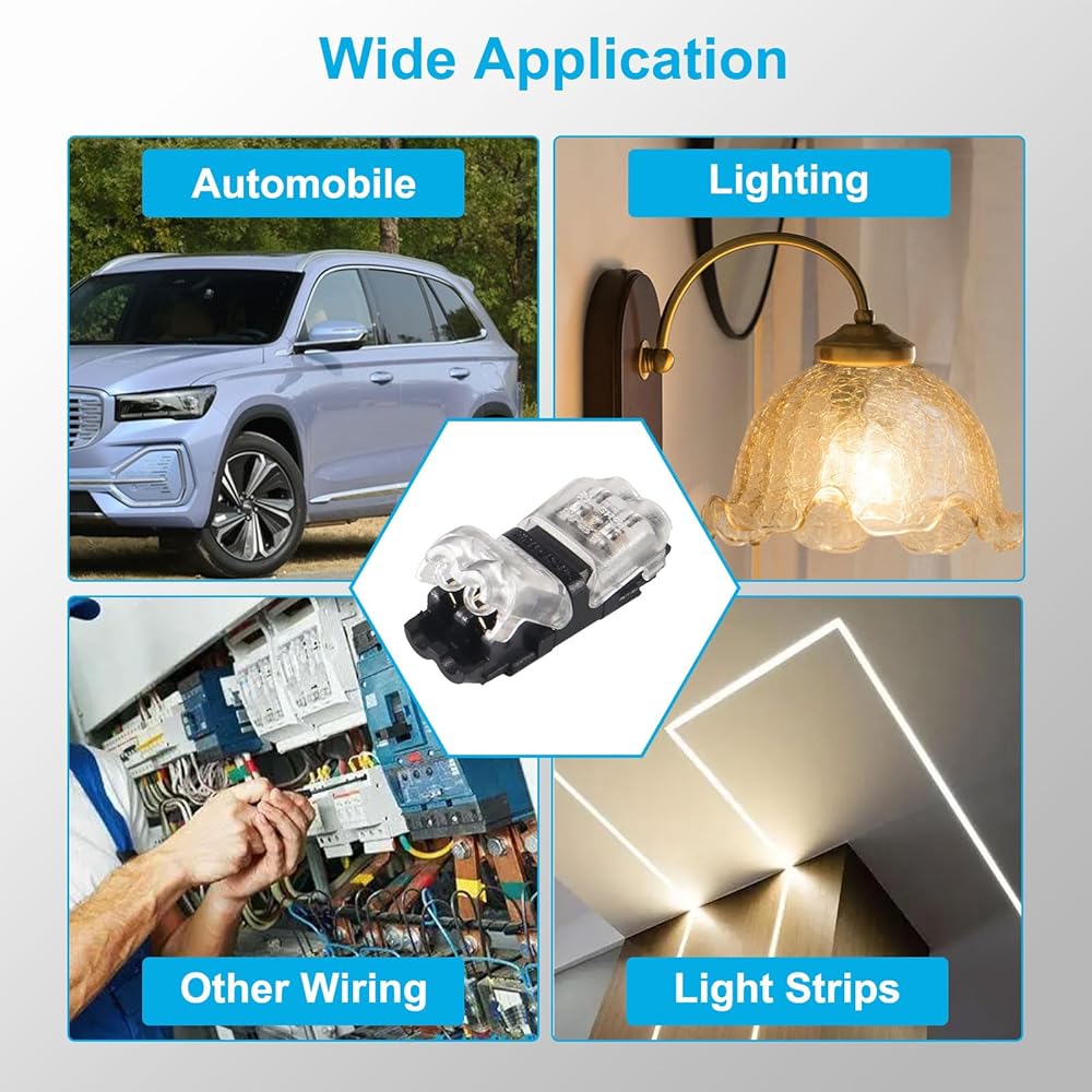 WIDE APPLICATIONS: The wire connectors is perfect for various low voltage and high voltage electrical connections and can be utilized for diverse tasks like electrical wiring projects, installation of vehicle, audio, video, and LED lights, or even for the connection of automotive wires. It is ideal for automotive wire connections such as car audio, LED turn signal lights, car's cigarette lighter wiring, speaker wire splices, and more.