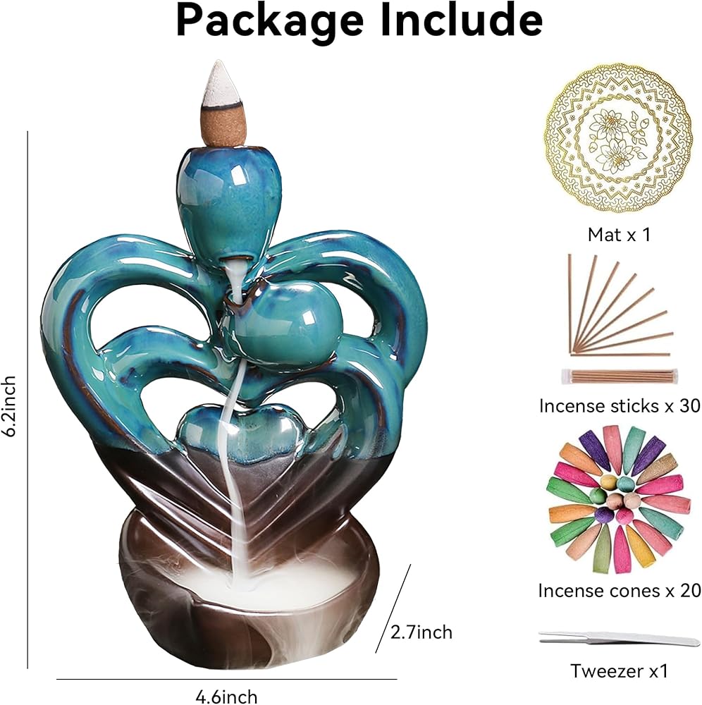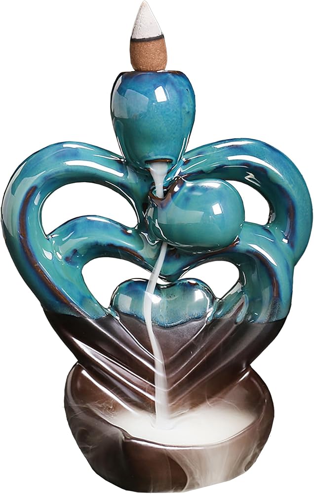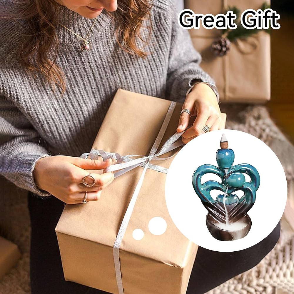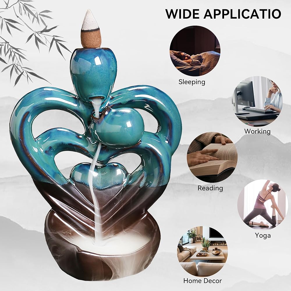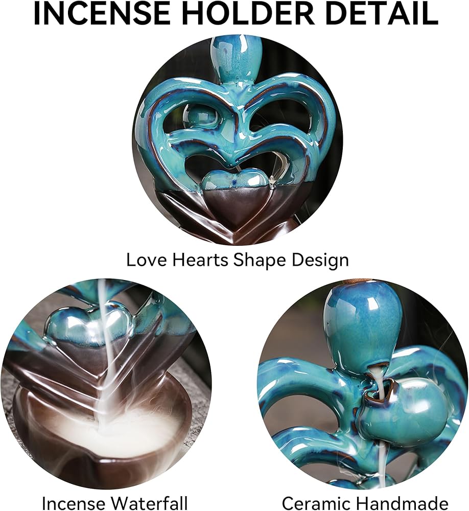 Double Heart Backflow Incense burner backflow incense burner is made of ceramic material, fine workmanship, durable quality, and can be used for a long time, which is conducive to improving the quality of life and making life better. The incense burner can calm the mind, improve sleep quality, purify the air, and also help to inspire, relieve stress, and calm yourself down. The incense burner is easy to clean after use, rinse the burner with boiling water and the stains on the burner will be removed Our backflow incense burner lovingly modeling design exquisite, can be applied to most home spaces, such as living room, bedroom, hall, yoga studio, and meditation room, plays a good decorative effectWaterfall incense burner is unique and creative, it is a great gift for family and friends on holidays, parties, birthdays, housewarming, and other important days.