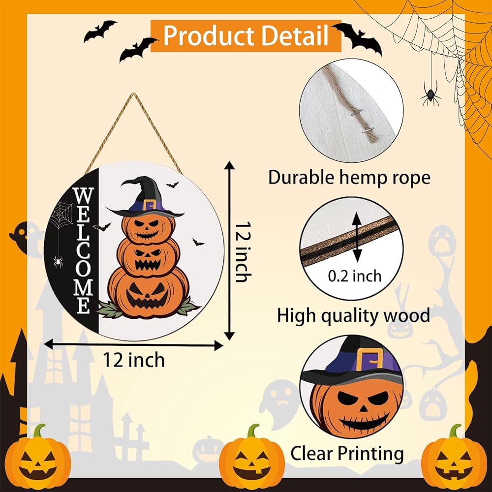 Unique Design: Our Halloween door decoration design is unique and beautiful, 3 layers of pumpkins with ‘Welcome' sign, bats, spider web, and other Halloween elements, scary pumpkin pattern, full Halloween atmosphere, perfect for decorating your home on Halloween to welcome the arrival of Halloween