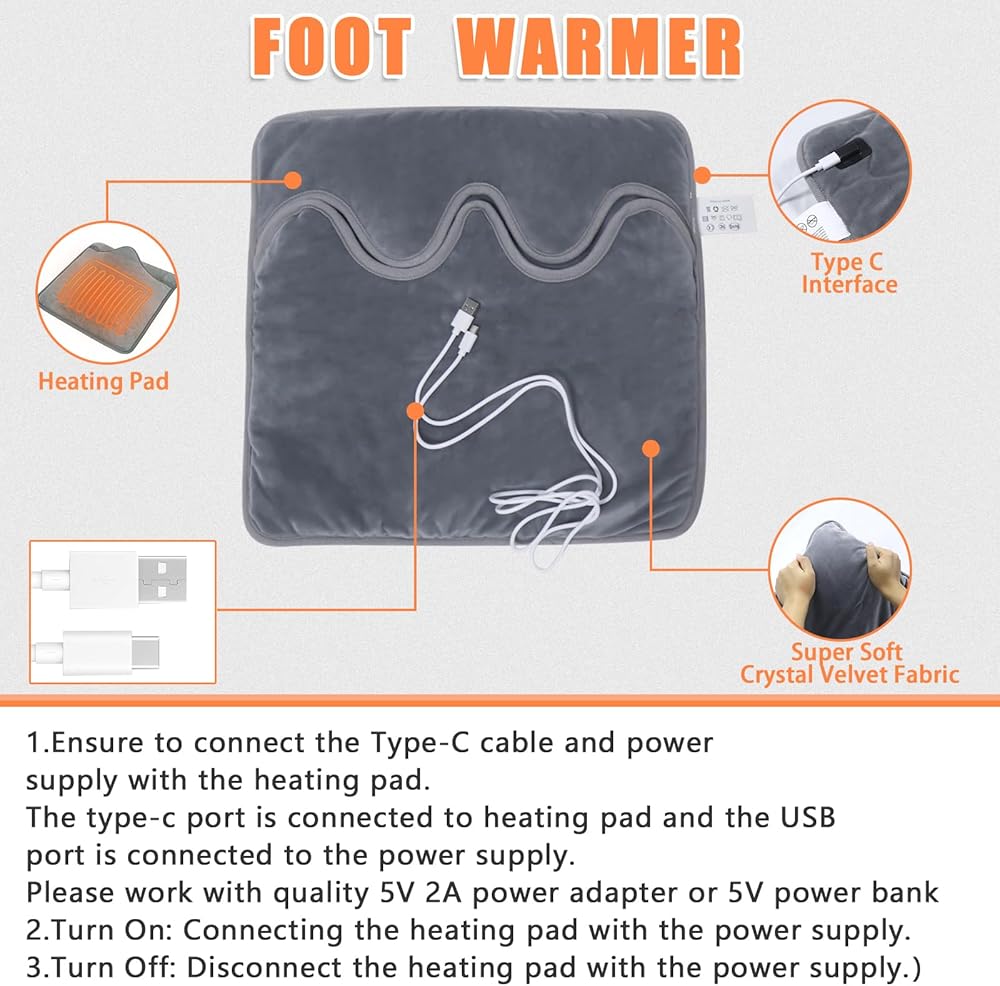 • [Great Gift for Men and Women] Comes with a USB cable, The type-C port need to connect to the feet warmer and the USB port need to connect to the power supply, so easy and convenient to use it at anytime and anywhere, just be sure the power supply is no more than 5V. A great gift for women and men for the long winter