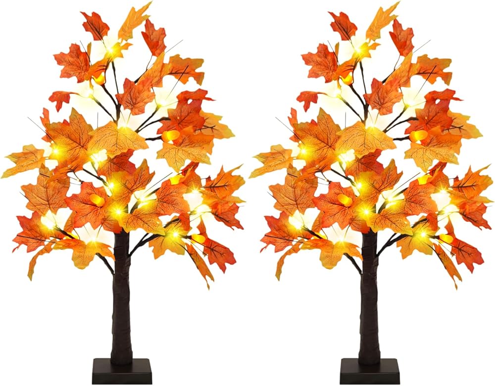 عبوتان من شجرة الخريف المضيئة على سطح الطاولة مع مؤقت: عبوة من قطعتين، تتميز كل شجرة قيقب خريفية بمفتاح تشغيل/مؤقت/إيقاف على القاعدة، مما يسمح لك بتشغيل الضوء وإيقافه، أو ضبط وظيفة مؤقت للسماح لها بالذهاب لمدة 6 ساعات. تشغيل و18 ساعة إيقاف تلقائيًا كل يوم