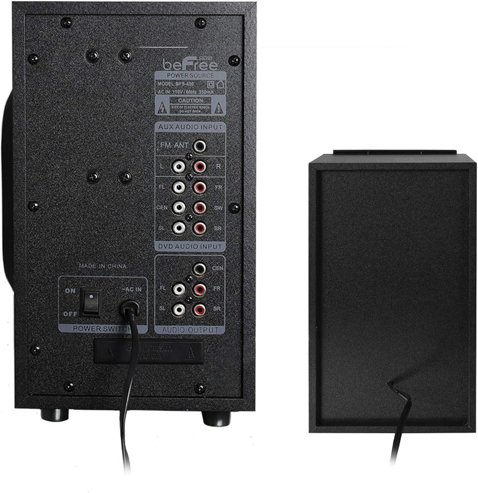 استمتع بتجربة المسرح المنزلي المثالية مع نظام سماعات البلوتوث ذات الصوت المحيطي 5.1 قناة من beFree Sound. تم تصميم نظام السماعات هذا بشكل متطور، ويتميز بمظهر أنيق وصوت سلس. بفضل إمكانية تشغيل Bluetooth وUSB وSD وFM، يوفر النظام أفضل خيارات الاستماع الممكنة لمتعتك. يتضمن مضخم صوت مقاس 5.25 بوصة، وخمسة مكبرات صوت مقاس 3 بوصات، وجهاز تحكم عن بعد (يتطلب بطاريتين AAA، غير متضمنتين)، وكابل صوت واحد، وهوائي FM واحد، و3 كابلات توصيل DVD