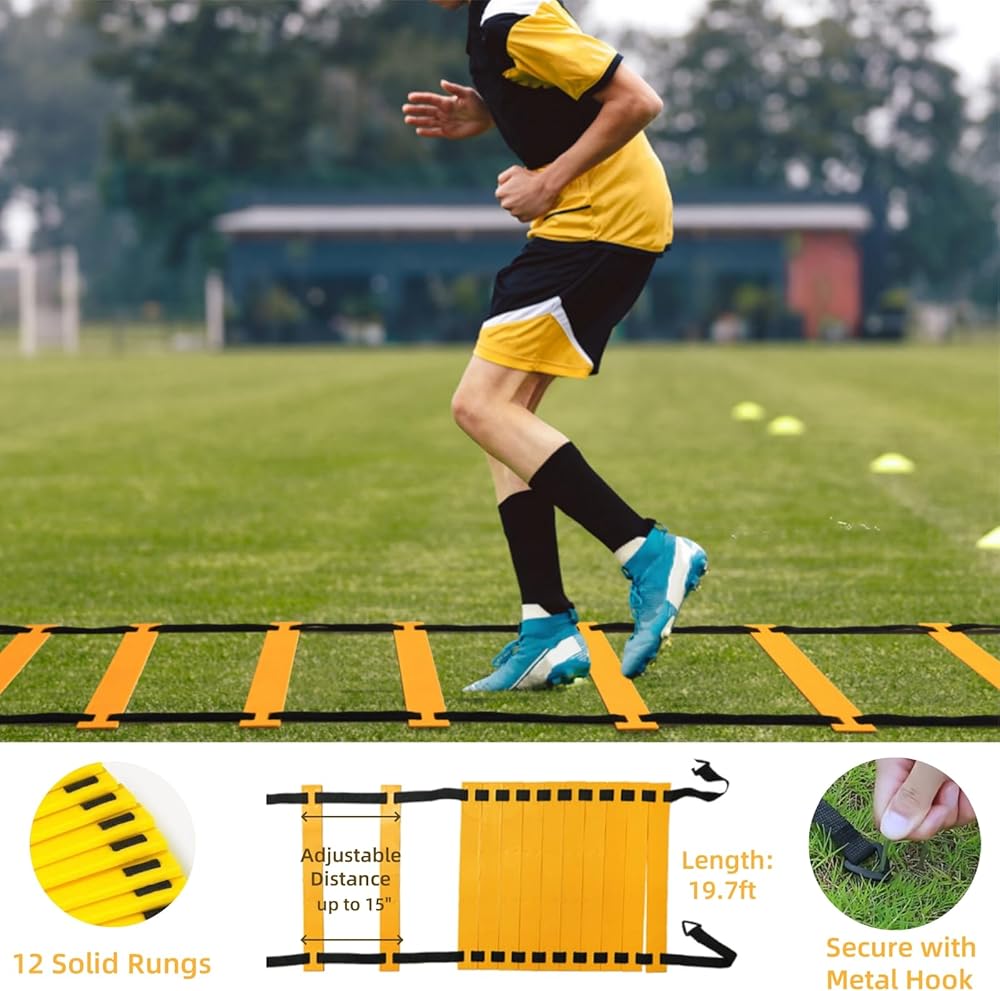 حزمة قيمة: تشتمل مجموعة تدريب كرة القدم الخاصة بنا على شبكة كرة قدم قابلة للطي 4x3، وكرة واحدة مقاس 3، و1 12 درجة سلم رشاقة بطول 119.7 قدمًا، وحقيبة واحدة على شكل مروحة، ومضخة واحدة، وحقيبة تخزين واحدة، و4 قطع من المسامير الأرضية على شكل حرف U، و4 أبازيم مثلثة و4 قطع أوتاد أرضية. إنه مزيج مثالي وكامل لتدريب كرة القدم.