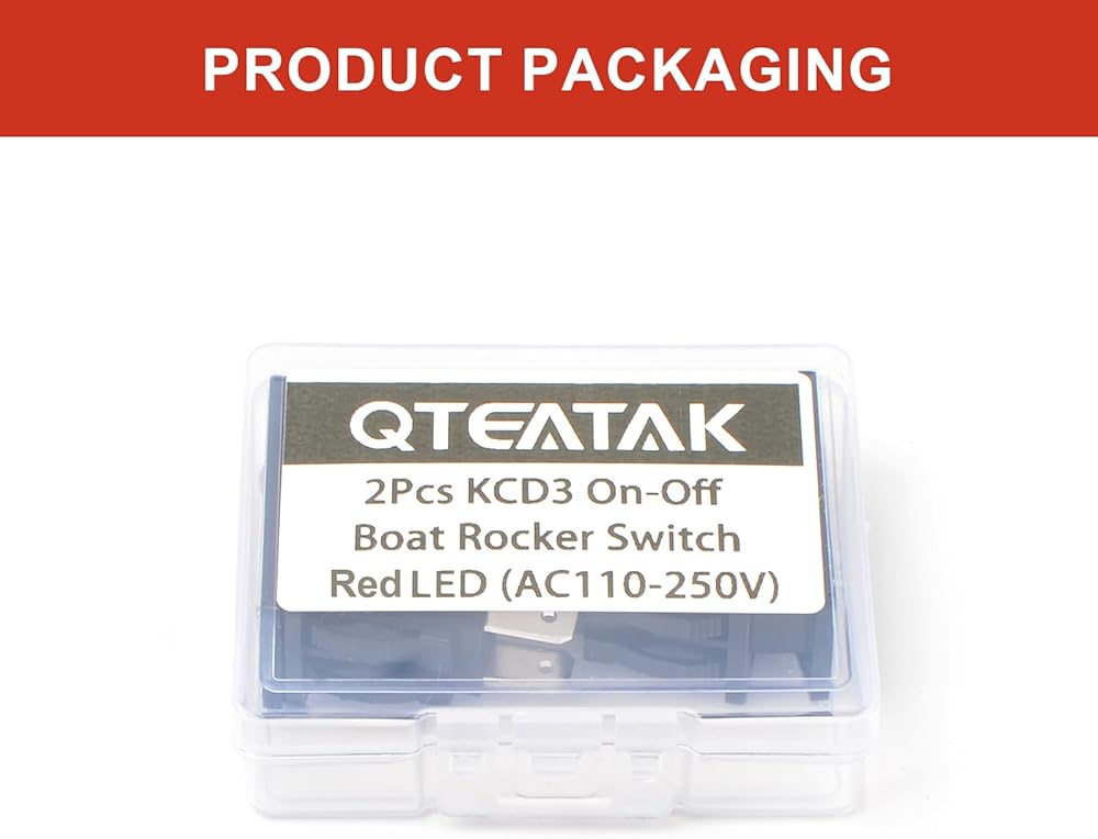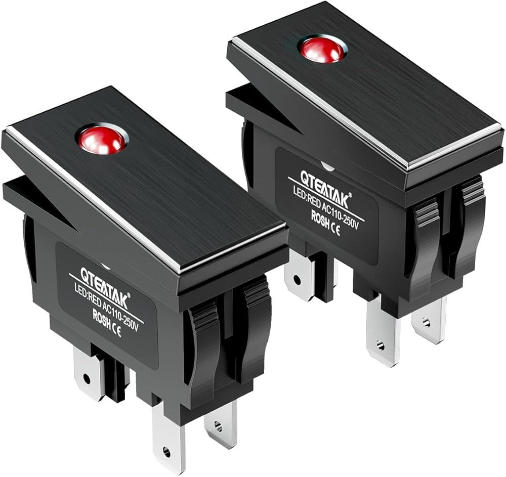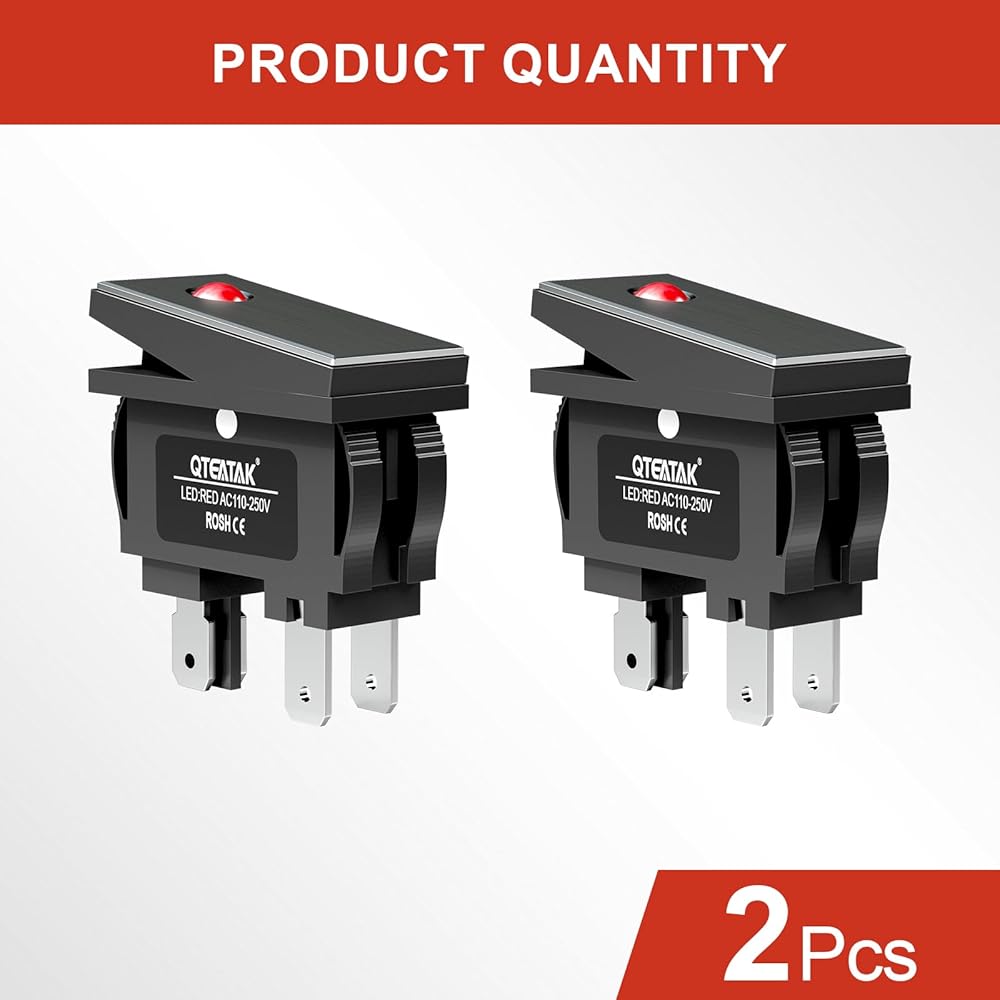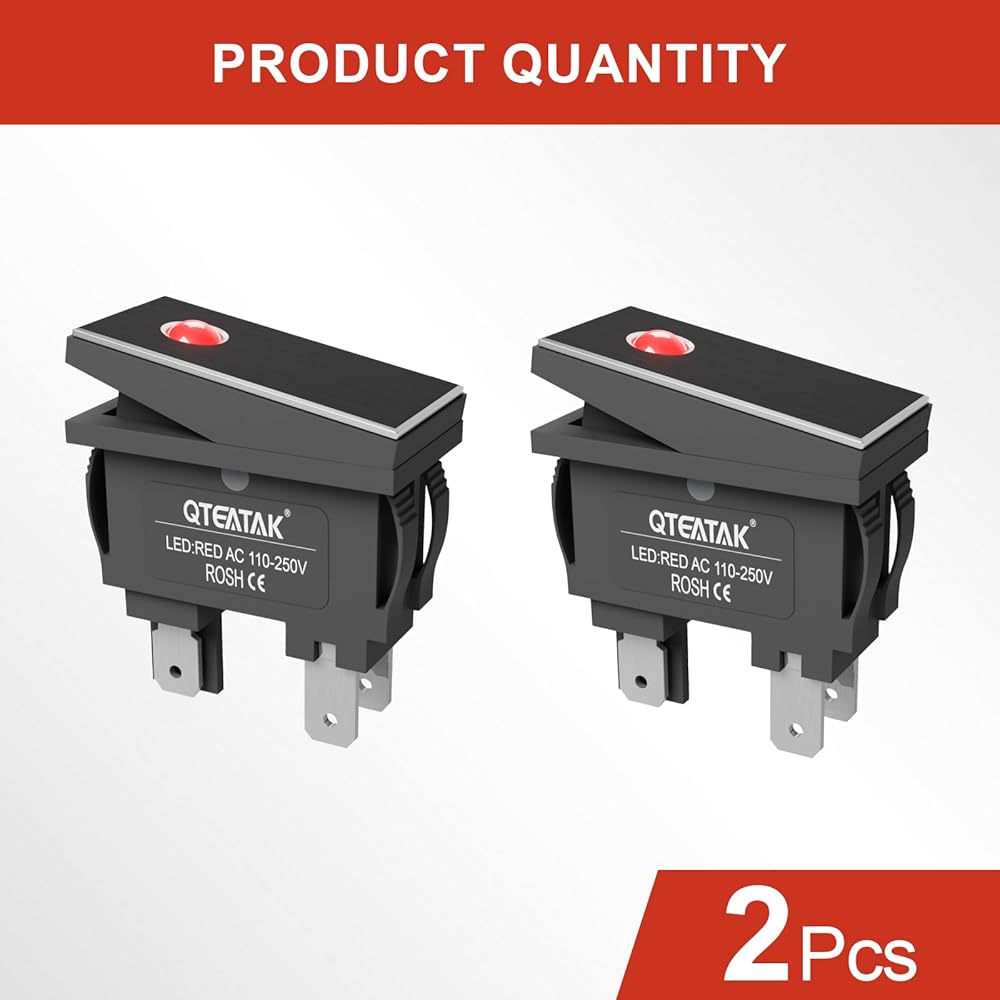 Product Parameters: Brand: QTEATAK Material: Metal, Plastic Color: Green LED Panel: Black Ith: 16A Rated Voltage: AC250V Terminal: 4-Pin Operation Mode: On-Off Contact Type: DPST Connector Type: Plug in Mounting Type: Panel Mount Switch Type: Boat Rocker Toggle Switch