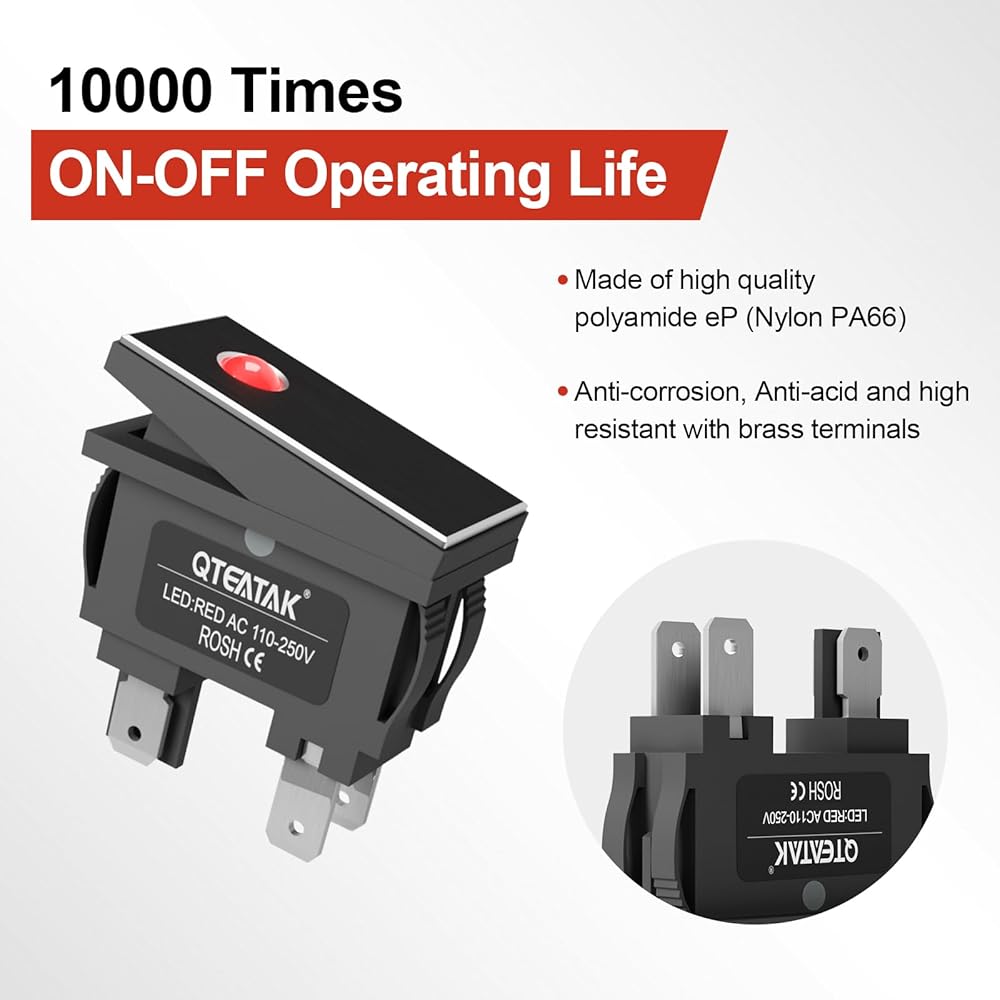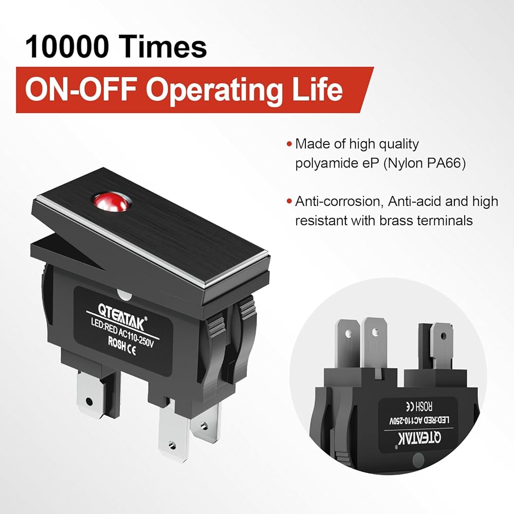 10000 Times ON-OFF Operating Life: Made of high quality polyamide eP(Nylon PA66) , this sturdy mini boat rocker switch is born for anti-corrosion, anti-acid and high resistant with brass terminals