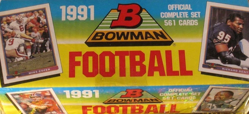 Resurrected by Topps after a 36 year hiatus, Bowman returned to the football card playing field with a 561-card standard-size set. The cards retain some of the qualities from early Bowman products. As far as layout, the backs resemble those of the 1950s. They are printed in black and green on gray and have a write-up, bio and stats from the previous season. The cards are checklisted below alphabetically according to teams. Subsets include Rookie Superstars (1-11), League Leaders (273-283) and Road to Super Bowl XXV (547-557). Rookie Cards include Alvin Harper, Randal Hill, Derek Loville, Herman Moore, Mike Pritchard, Ricky Watters, and Harvey Williams.