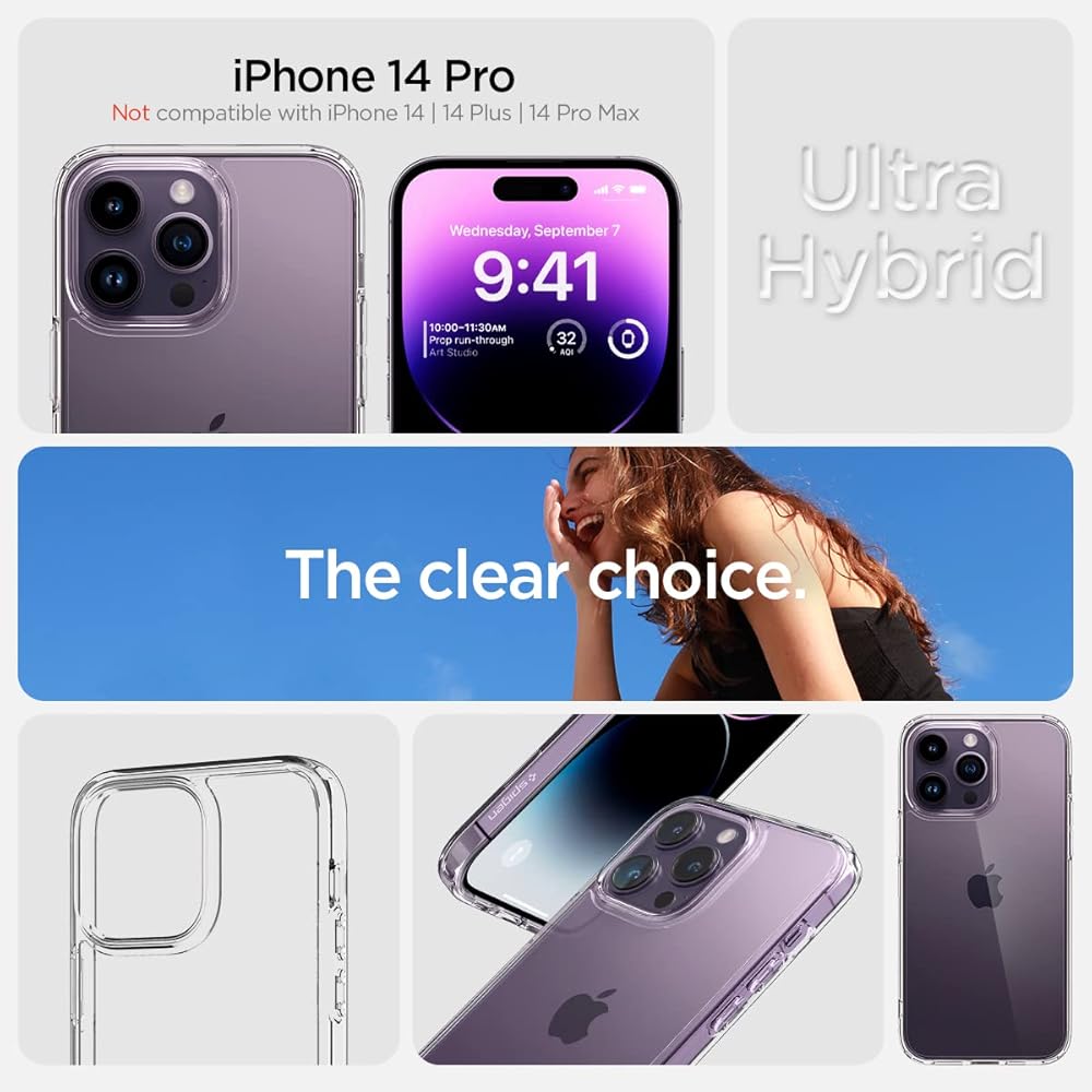 حافظة Spigen لهاتف iPhone 14 Pro، [تقنية مضادة للاصفرار] [حماية من السقوط من الدرجة العسكرية] حافظة هاتف هجينة مقاومة للصدمات لهاتف iPhone 14 Pro - شفاف كريستالي