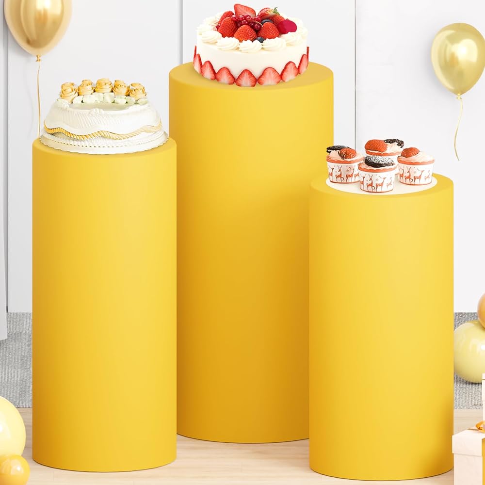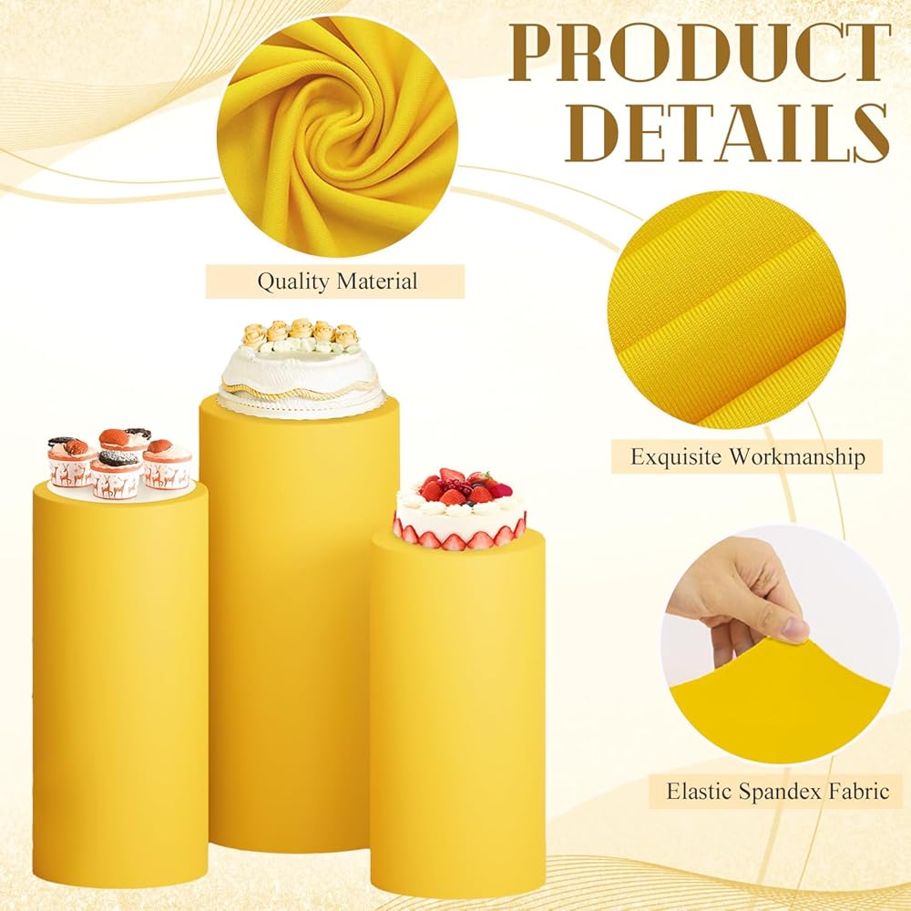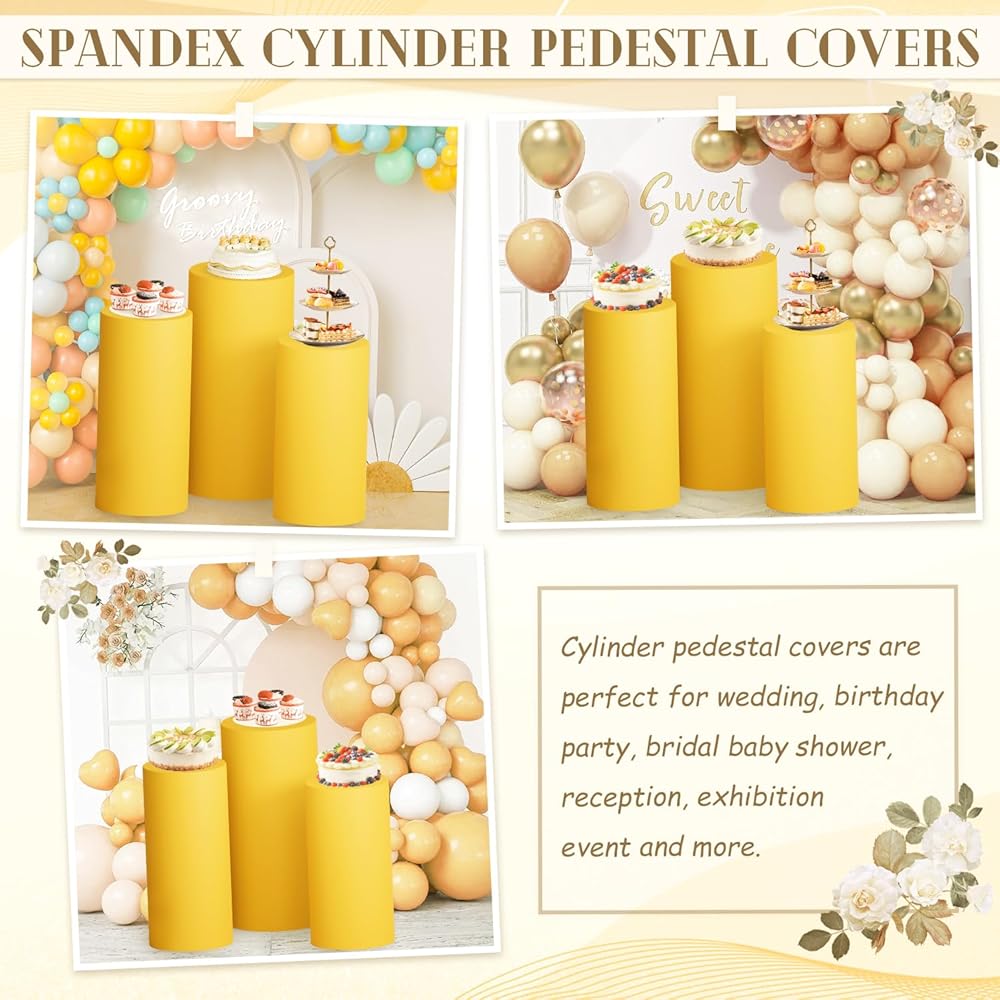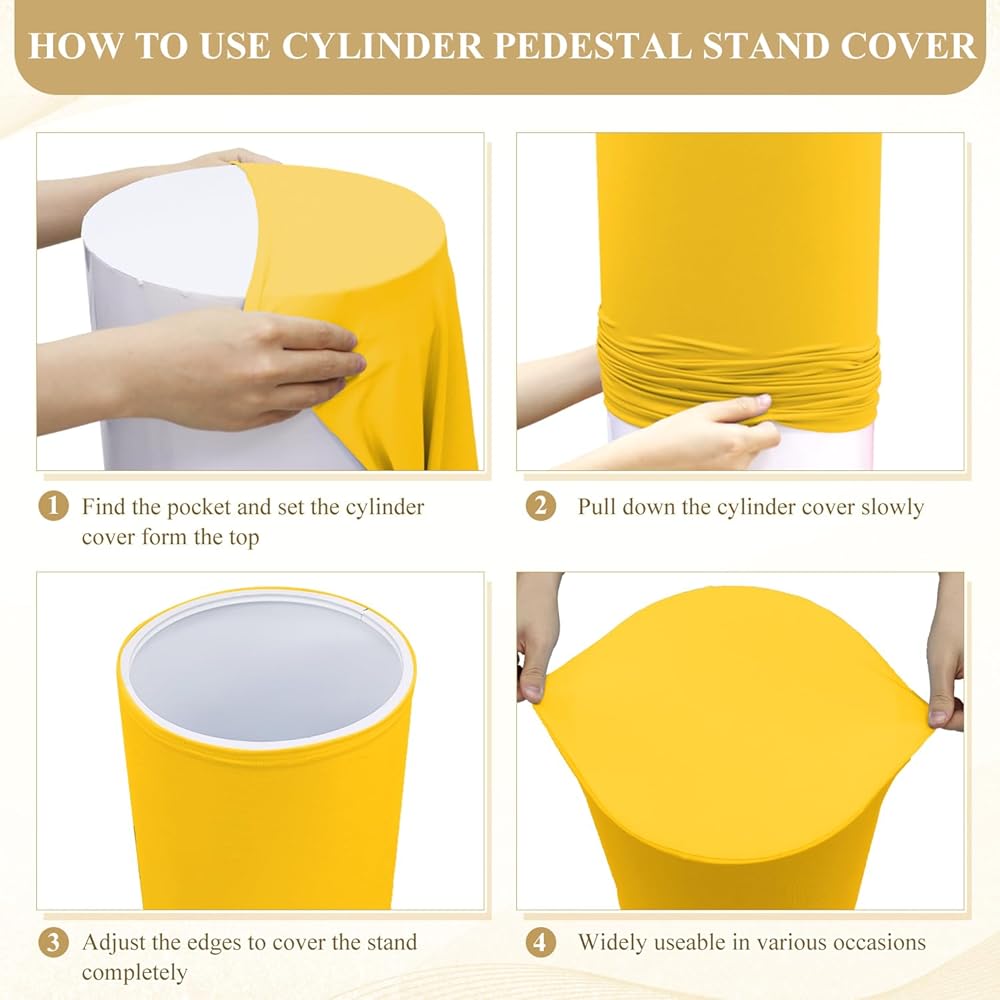 ⭐تصميم مرن - غطاء حامل قاعدة أسطوانة - تغطي قاعدة قاعدة الأسطوانة القابلة للتمدد الشرائح بسهولة على حامل قاعدة الأسطوانة لميزة المرونة، وتتوافق مع شكلها دون أي تجاعيد أو ترهل. سيمنحك المقاس المناسب مظهرًا أنيقًا ولامعًا طوال الحدث، مما يترك ذكرى أنيقة وساحرة لضيوفك.