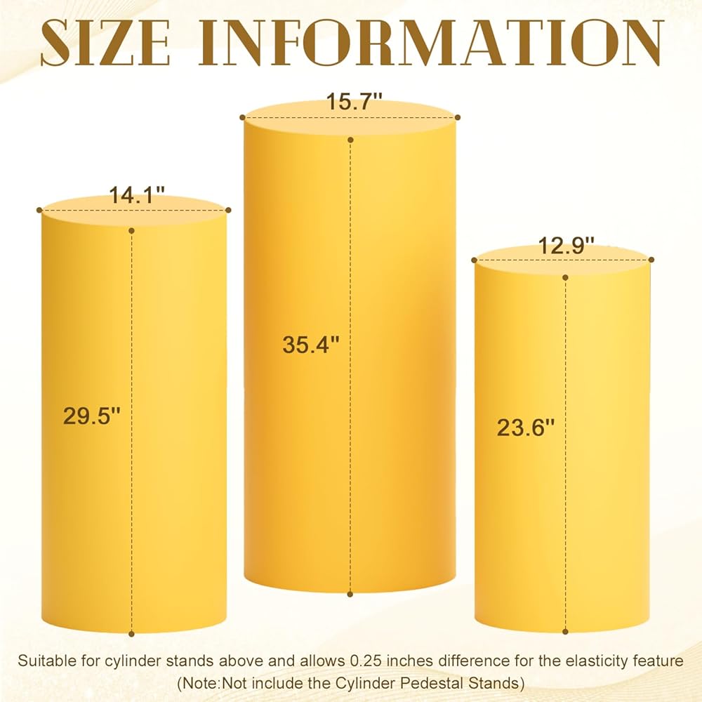 ⭐ما هو موجود في العبوة - غطاء قاعدة أسطوانة سباندكس؟ سوف تحصل على 3 قطع أغطية قاعدة أسطوانية ذهبية بأحجام مختلفة (الحامل غير متضمن). L-35.43 بوصة ارتفاع × 15.75 بوصة عمق، متوسط-29.52 بوصة ارتفاع × 14.17 بوصة عمق، صغير-23.62 بوصة ارتفاع × 12.99 بوصة عمق. ستكون أغطية القاعدة الأسطوانية مناسبة دائمًا بشكل مثالي ومريح للحصول على مظهر احترافي في كل مرة!