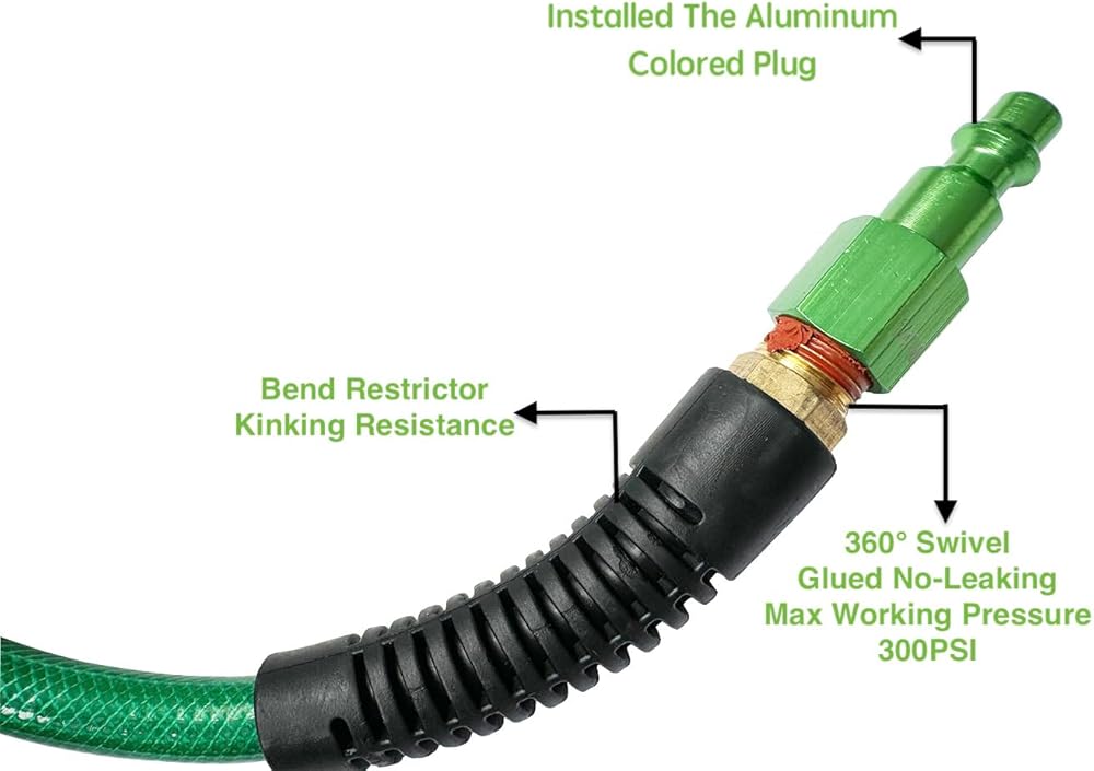 ➤ الأداء - مقاوم للتآكل والتآكل والشحوم. خفيفة الوزن ومثالية للوظيفة (التسقيف). كان خرطوم الهواء هذا قويًا جدًا ويصل إلى الشارع بسهولة. لقد قامت بتثبيت قارنة التوصيل والقابس العالمية الاحترافية، والتي تناسب قابس I/M ARO T. تعتبر قارنة التوصيل والقابس الصناعية ميزة إضافية لأنه عادةً ما يتم إسقاط خراطيم الهواء وركلها ودفعها والدوس عليها. التركيبات النحاسية الدوارة متينة بما يكفي للتعامل مع الصدمات. يعمل مقيد الانحناء على تقليل الالتواء وإطالة عمر الخرطوم.
