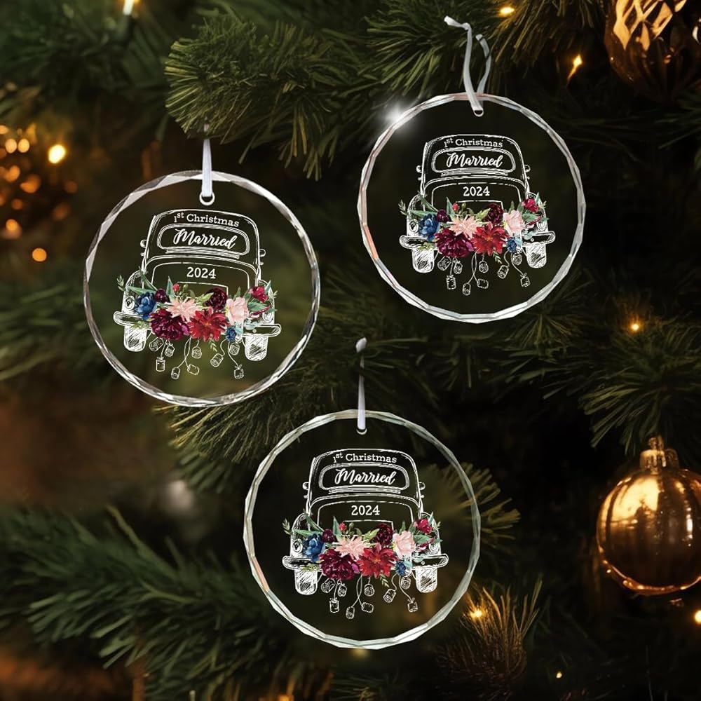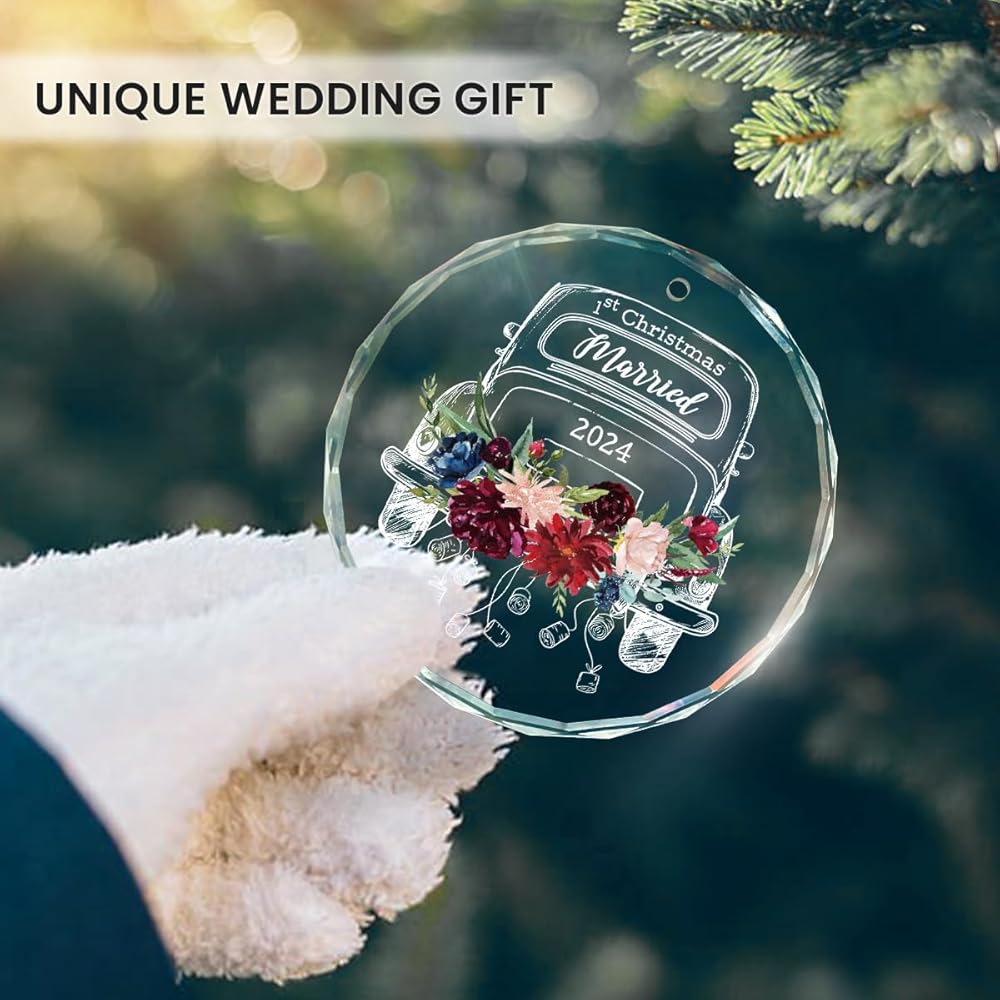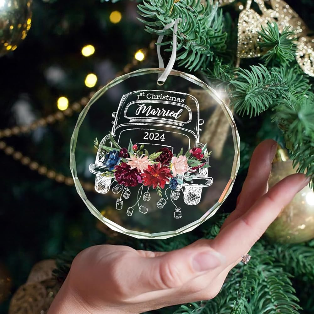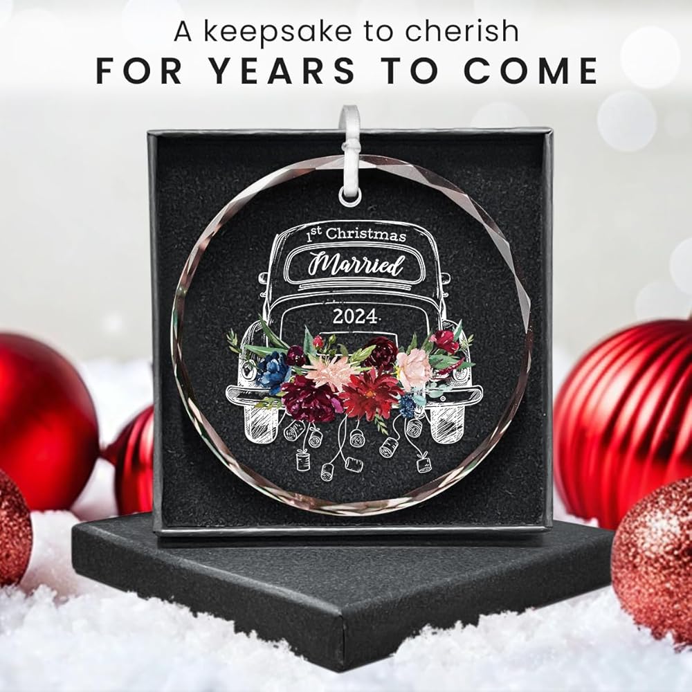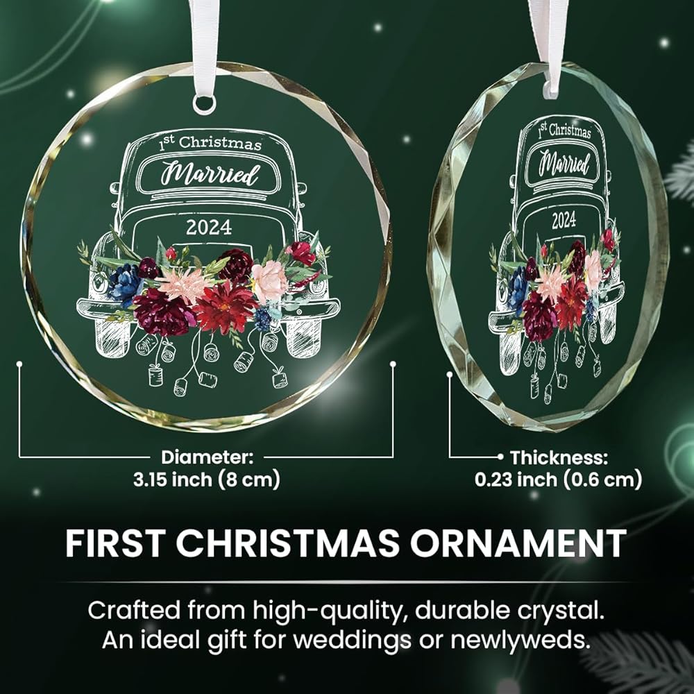 زينة عيد الميلاد الأول معًا: تتميز بتصميم ساحر مع لمسات من الزهور وكلمات "1st Christmas Married"، هذه الزينة هي إضافة جمالية لأي ديكور للعطلات، سواء كانت شجرة عيد الميلاد، أو قطعة مركزية للطاولة، أو إكليل، أو كزينة على هدايا ملفوفة. وسوف تبرز في موسم العطلات هذا.