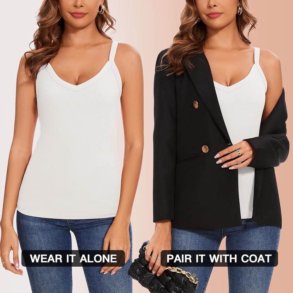 قميص بدون أكمام أساسي للنساء: تتميز قمصان الملابس الداخلية الحرارية النسائية برقبة على شكل حرف V، مقاس نحيف، حراري، صوف، تي شيرت بدون أكمام، قميص صلب بدون أكمام، قميص بدون أكمام، قميص قصير، كامي، طبقة علوية من الطبقة الأساسية، ملمس فائق النعومة، قابل للتمدد، مسامي نسيج، مريح في الارتداء.
