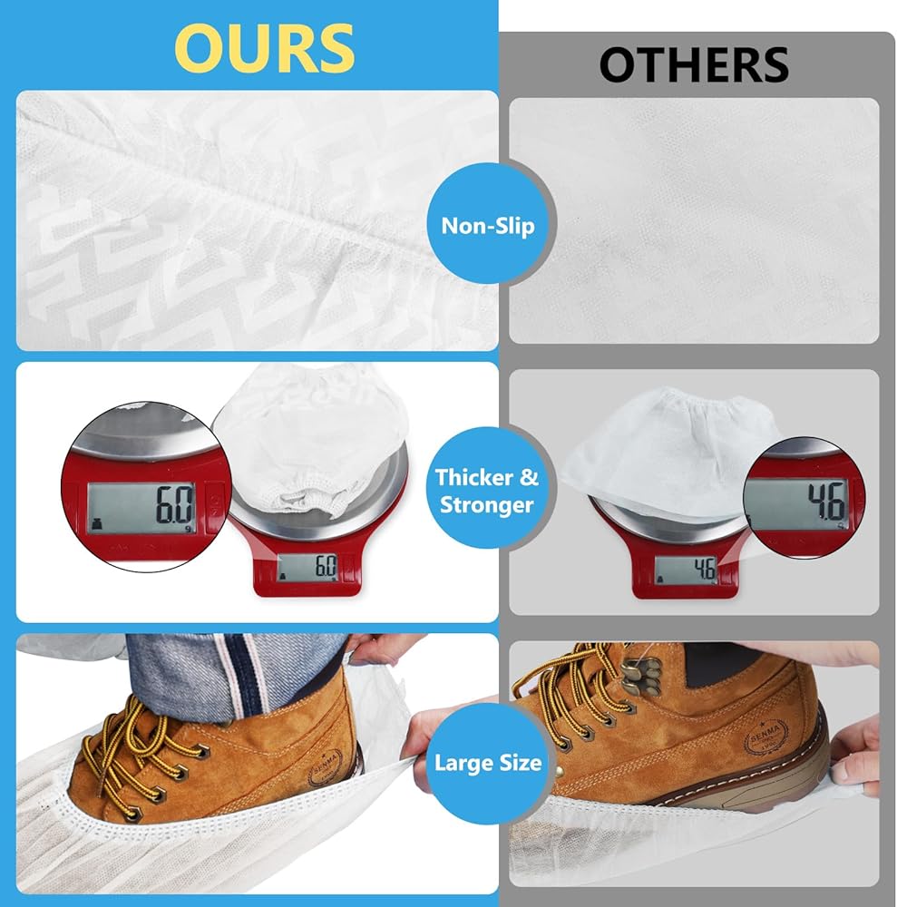 جودة عالية: مصنوع من مادة غير منسوجة عالية الجودة بوزن 6.2 جم، مما يجعل غطاء الحذاء أكثر سمكًا وأقوى وأكثر متانة، وأكثر مسامية، بدون رائحة، ومضاد للكهرباء الساكنة، وتقليل الضوضاء. سوف تحمي أحذيتنا الواقية المنازل والسجاد وأسطح الأرضيات الصلبة والمزيد!