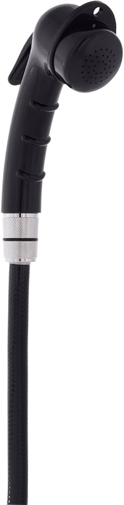دش مجوف من Ambassador Marine - كوب وغطاء أسود، بخاخ أسود صغير، خرطوم مطاطي أسود بطول 6 أقدام - 136-0000-KP-W