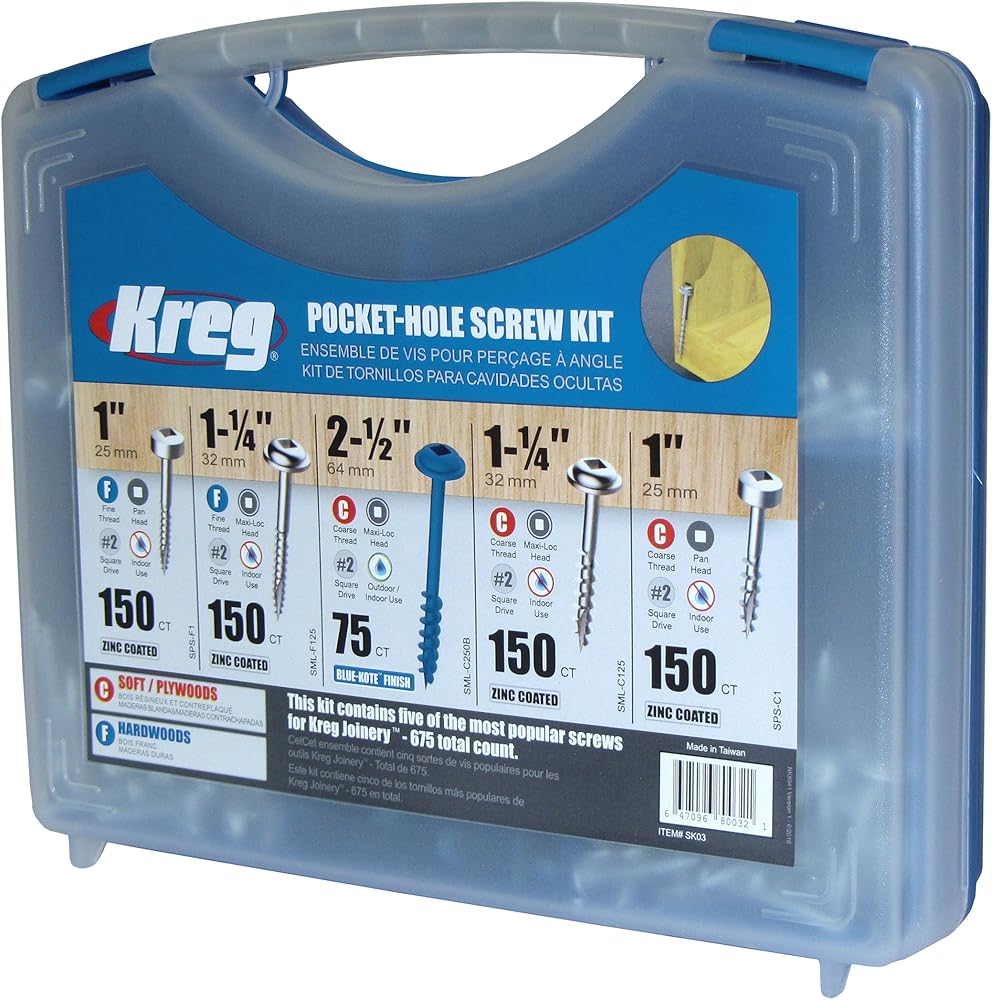 طقم براغي بفتحة الجيب Sk03 من شركة Kreg Enterprises Inc، 675 قطعة