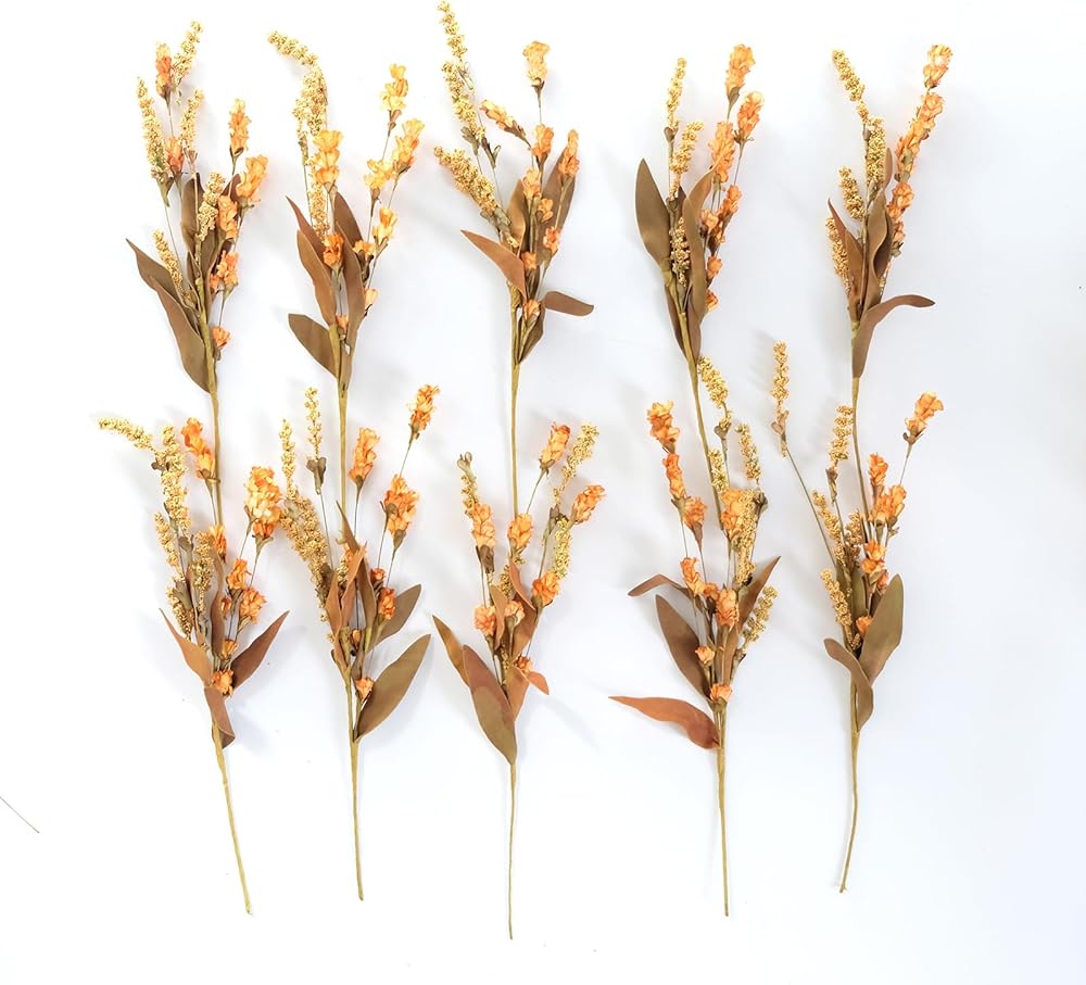 10 قطع من زهور الخريف الاصطناعية من TEMPUS لتزيين الخريف في الهواء الطلق وزهور الحبوب الاصطناعية المقاومة للأشعة فوق البنفسجية ونباتات الخريف المزيفة وزهور الخريف وديكورات عيد الشكر للمنزل والحديقة الداخلية (الخردل)
