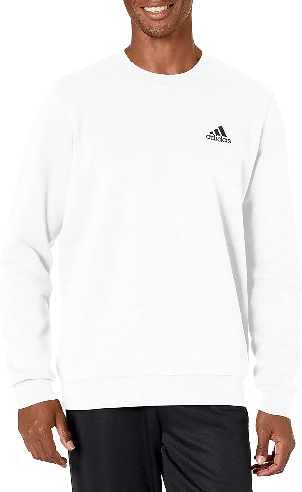 Comfortable, warm and a wardrobe staple. This men's adidas sweatshirt is made of cozy fleece and has ribbed cuffs and hem for a snug fit that helps keep out the cold. An adidas Badge of Sport on the chest completes the look.