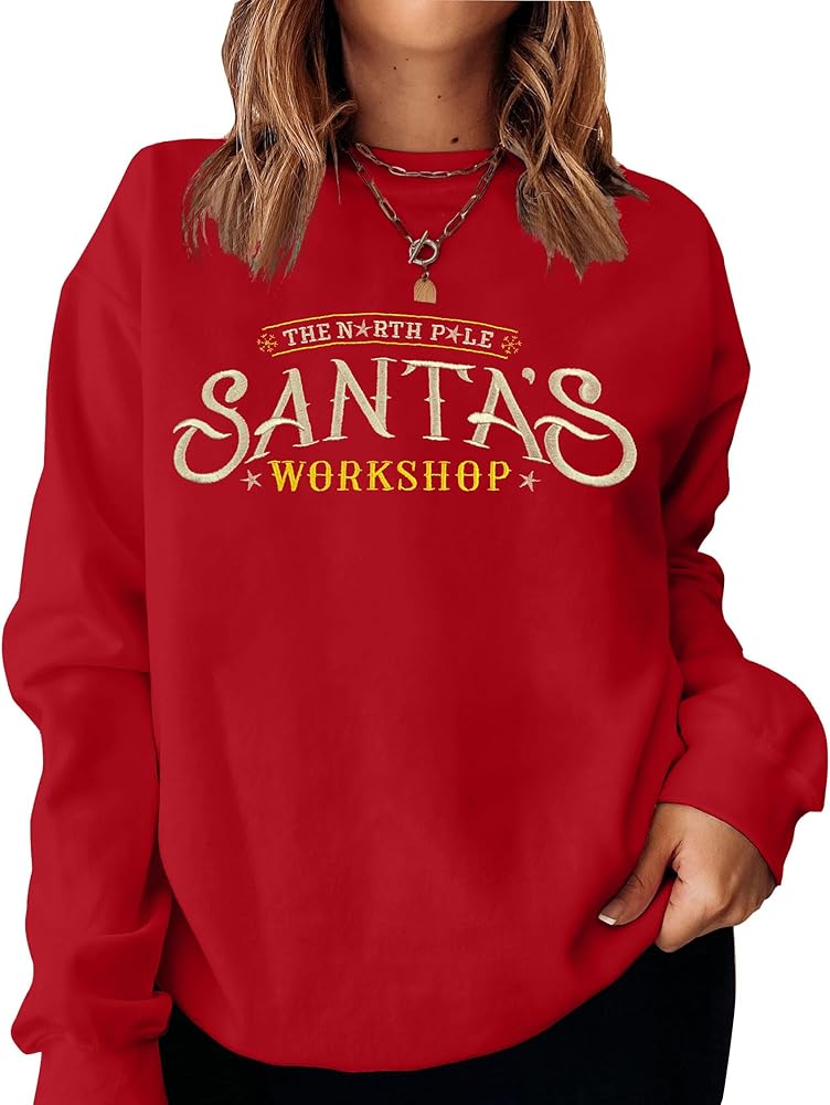 【المزايا: قمصان سويت شيرت للسيدات لعيد الميلاد، قميص برسومات حيوان الرنة اللطيف، بلوفر مطبوع عليه حروف مضحكة لأرواح عيد الميلاد من شركة North Pole Brewing للنساء، قميص عيد الميلاد المجيد، سويت شيرت بأكمام طويلة، سويت شيرت برقبة دائرية، سويت شيرت بكتف منسدل للنساء، سترة عصرية لعطلات عيد الميلاد، مقاس فضفاض كاجوال ملابس عيد الميلاد الخريفية والشتوية.