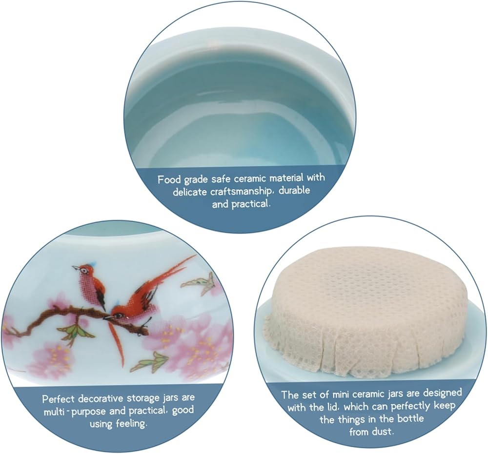 3 قطع من حاويات خزان التخزين مع الأغطية، وعاء السفر، مرطبان صغير لبلسم الشفاه، صناديق كريم الوجه، مرطبانات حاوية مستحضرات التجميل، مرطبان تخزين سيراميك، مرطبانات سيراميك صغيرة، مرطبان شاي سيراميك، أحمر الخدود