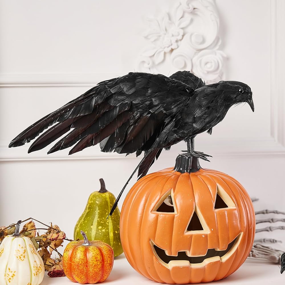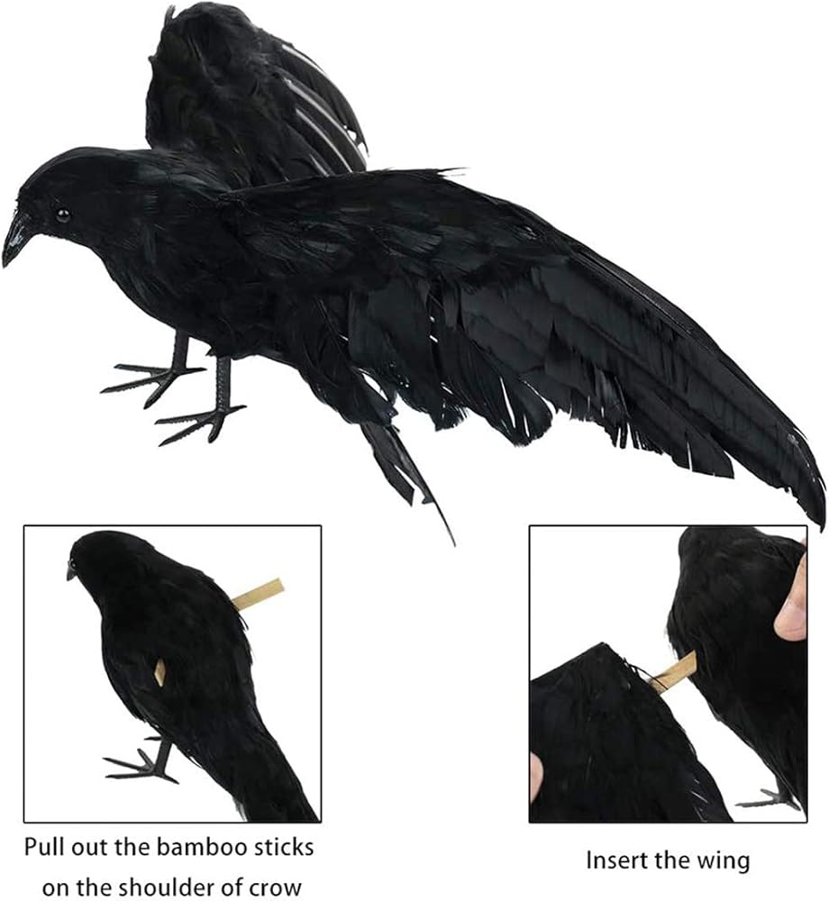 Halloween Decorative Crow: You can fasten crows to tree branches, fences, bars, chair backs, etc.The prop will let your children play their imagination, personalize these items and put them in the way they like.