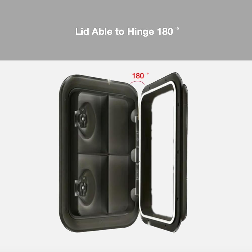 Boat access deck hatch & lid is versatile in use, well fitting onto flat surfaces, suitable for a variety of outdoor settings, such as boat, caravan, RV, etc.