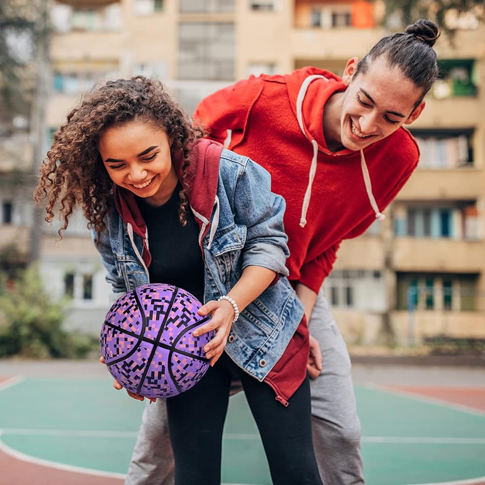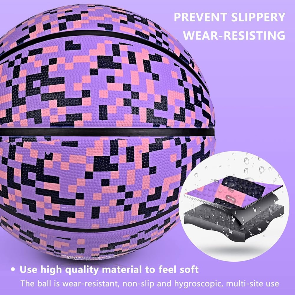 🏀 مادة عالية الجودة - مصنوعة من مطاط عالي الجودة، كرة السلة مع غطاء مطاطي مركب، مع متانة ممتازة، ومقاومة للتآكل ومتانة، وبطانة بوتيل 100% لإحكام الهواء بشكل ممتاز، ومناسبة للاستخدام المتكرر، الوزن 0.66-0.7 رطل، سهلة الإمساك في راحة يدك.