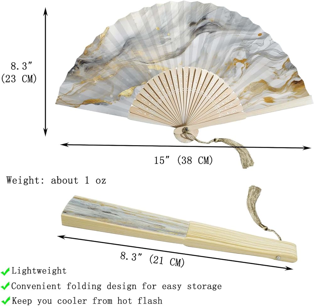 • ✨Folding Fan Size: Unfolded size 15 x 8.26 Inches (38 x 21 CM), folded size is 8.26 Inches. Convenient folding design for easy storage in your bag or pocket, it's your go-to accessory for on-the-move cooling. Suitable for both men and women, it complements various outfits and occasions.