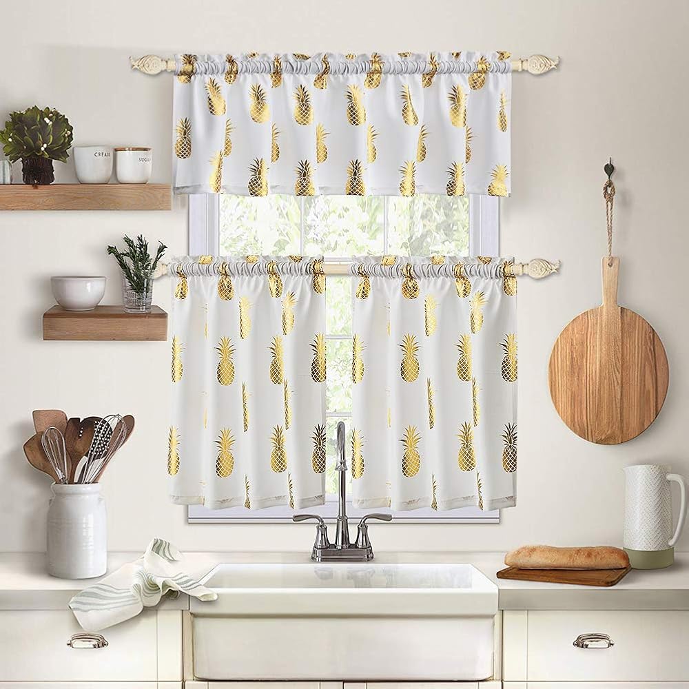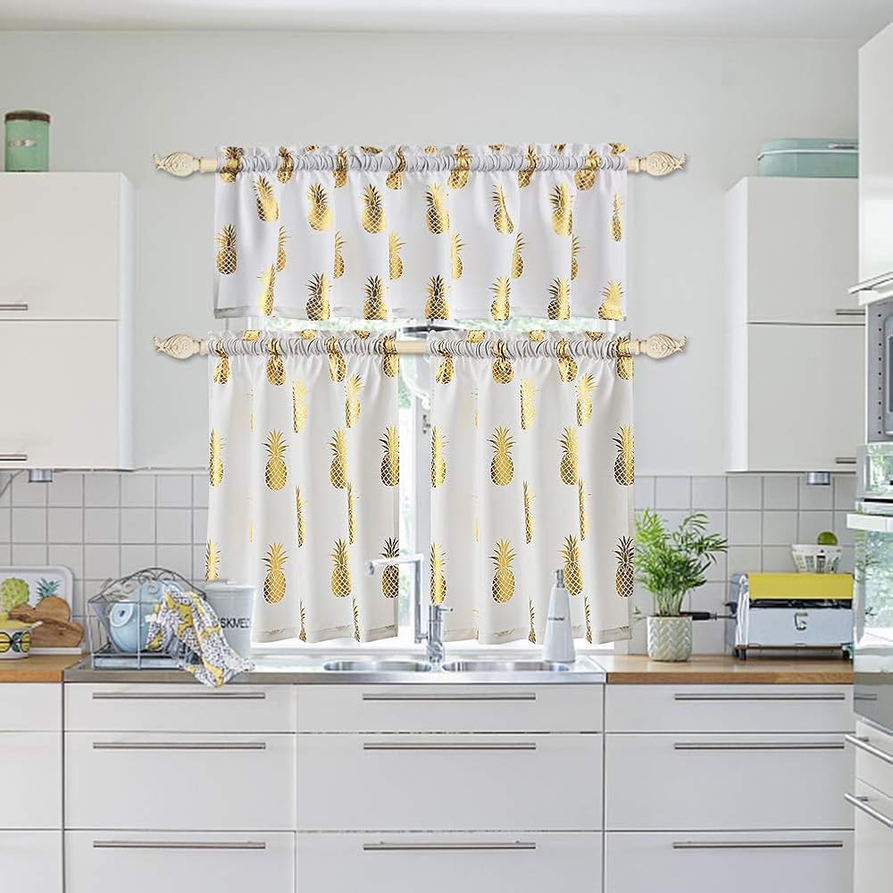 【طباعة الأناناس】 توفر ستائر النوافذ الصغيرة هذه على شكل أناناس ذهبي خصوصية معينة وتعطي مظهرًا حديقة ريفية جدًا، خاصة لموسم العطلات.