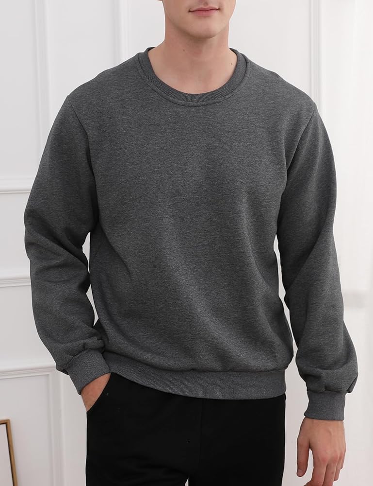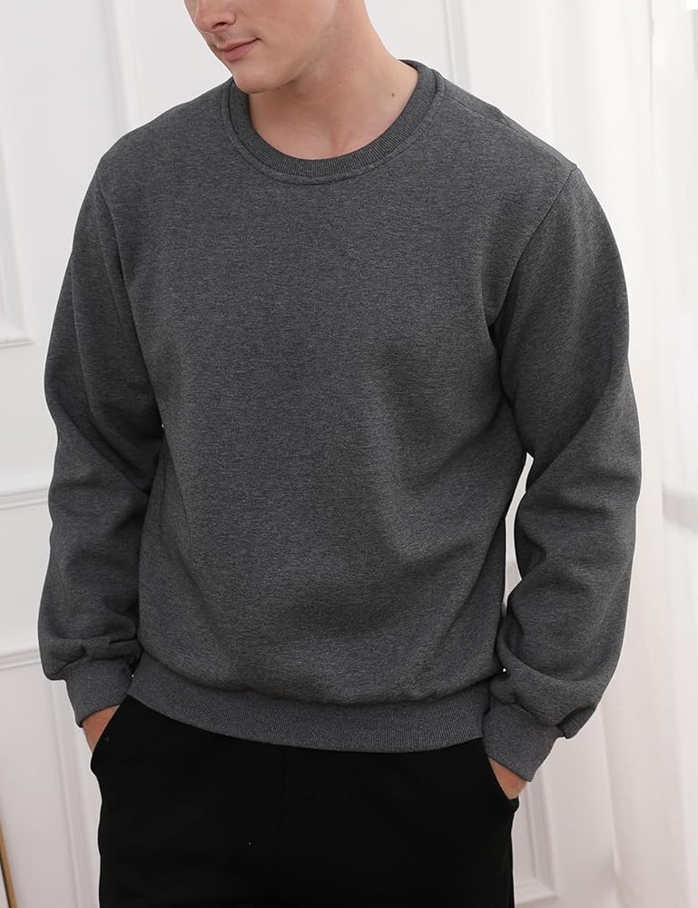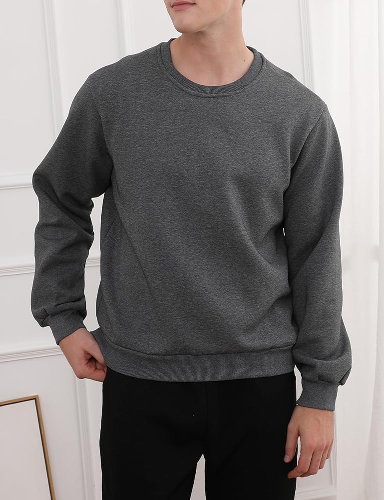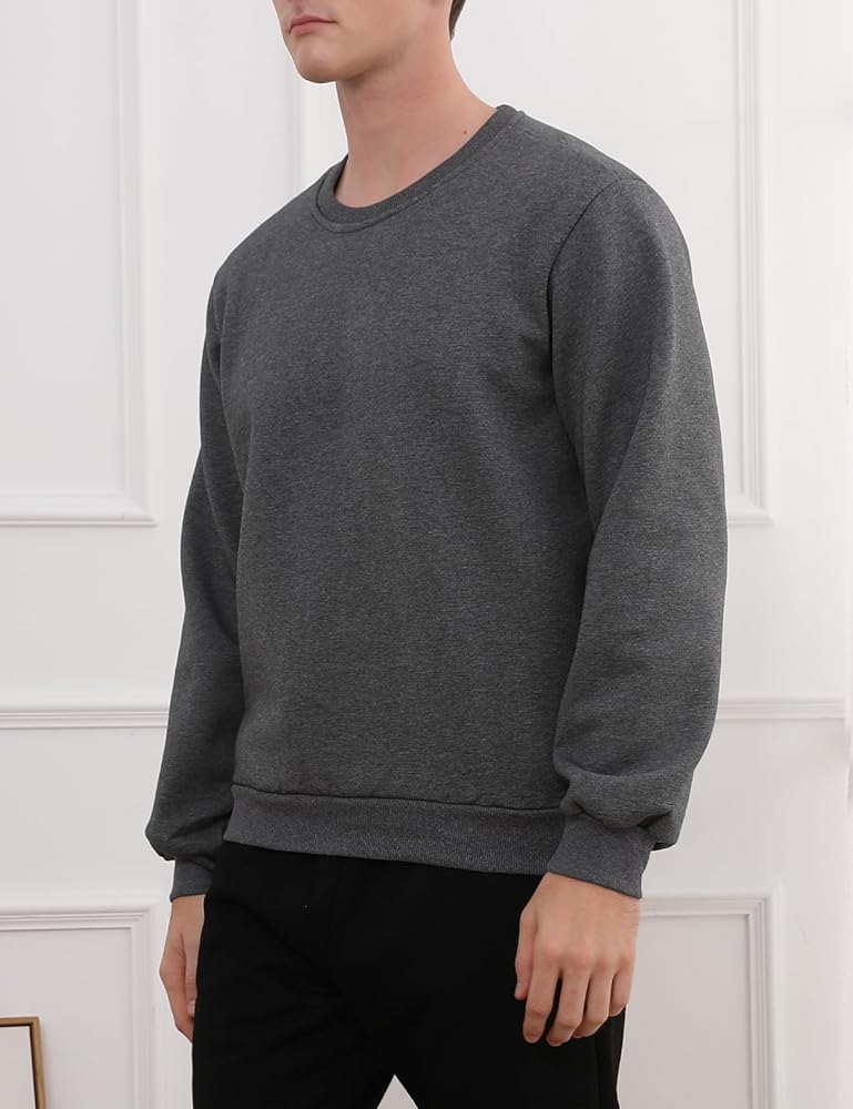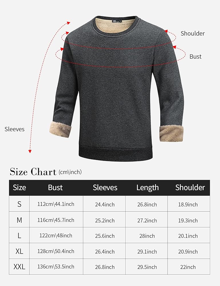 تصميم كلاسيكي: تتميز هذه السترات الثقيلة للرجال برقبة دائرية، وأكمام طويلة، وأساور أكمام وحاشية مضلعة، وخياطة ناعمة ومتينة. سويت شيرت دافئ مبطن بصوف الشيربا بقصة فضفاضة تناسب معظم أشكال الجسم.
