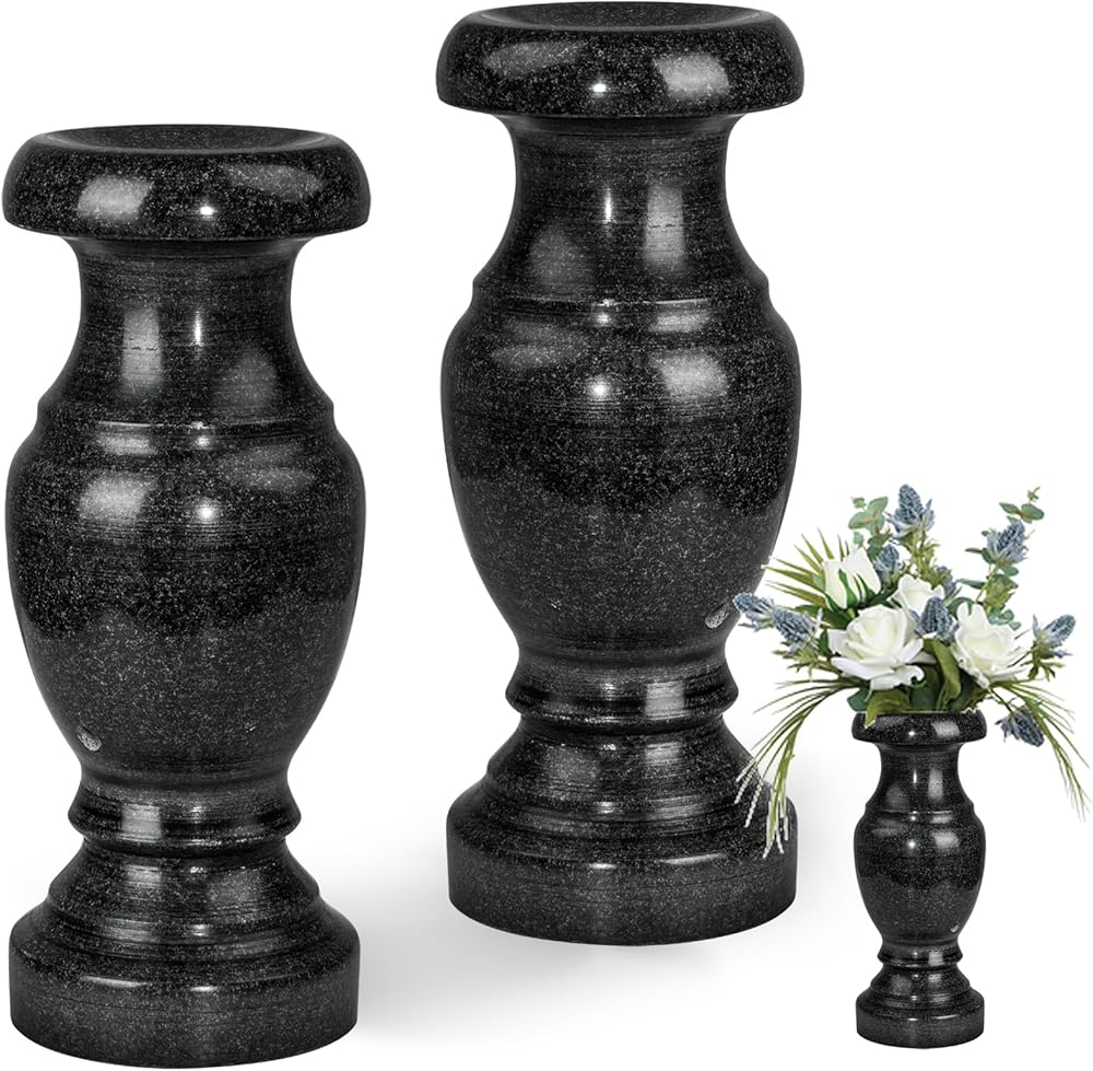 مزهرية مقبرة من حجر الجرانيت مثالية للزهور الطازجة أو الاصطناعية، الجزء الأوسط من المزهرية مصمم بفتحات تصريف. تشمل العبوة: 2 × مزهرية من الجرانيت الطبيعي، الزهرة غير متضمنة.