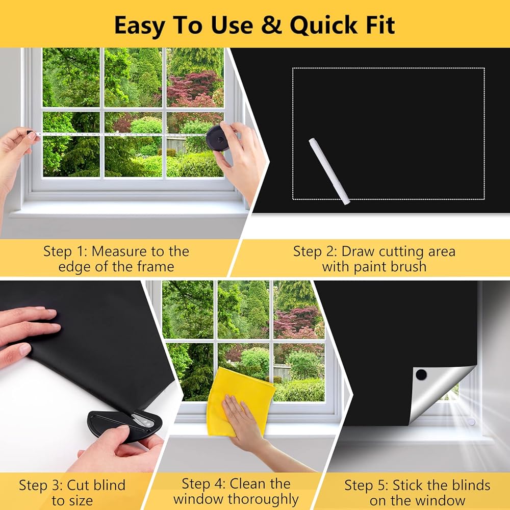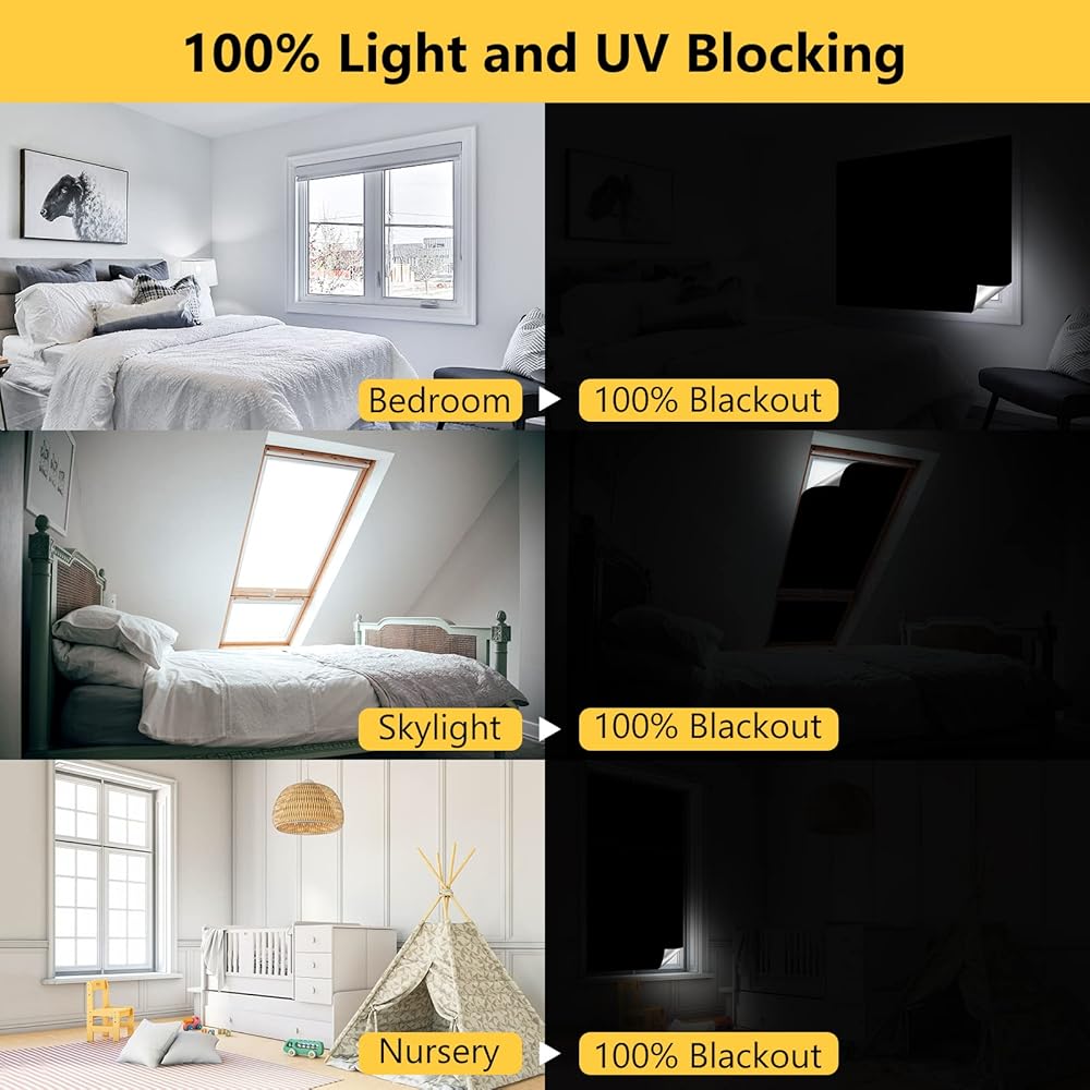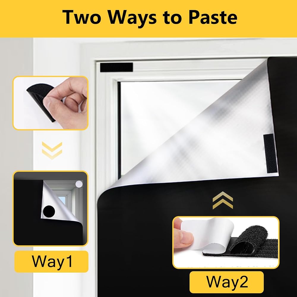 【سيناريوهات استخدام واسعة】ستارة التعتيم مناسبة للأماكن ذات ضوء الشمس القوي أو في البيئات التي لا تحتاج إلى ضوء على الإطلاق، مثل غرف نوم الأطفال والرضع، ودور الحضانة، والمناور، والحمامات، والمسارح المنزلية، وRV، وغرف المؤتمرات السينمائية والتلفزيونية، والفنادق. إلخ. ببساطة قم بلصقه على إطار النافذة أو الزجاج، يمكنك تحقيق البيئة المظلمة التي تريدها وحجب الشمس والأشعة فوق البنفسجية.