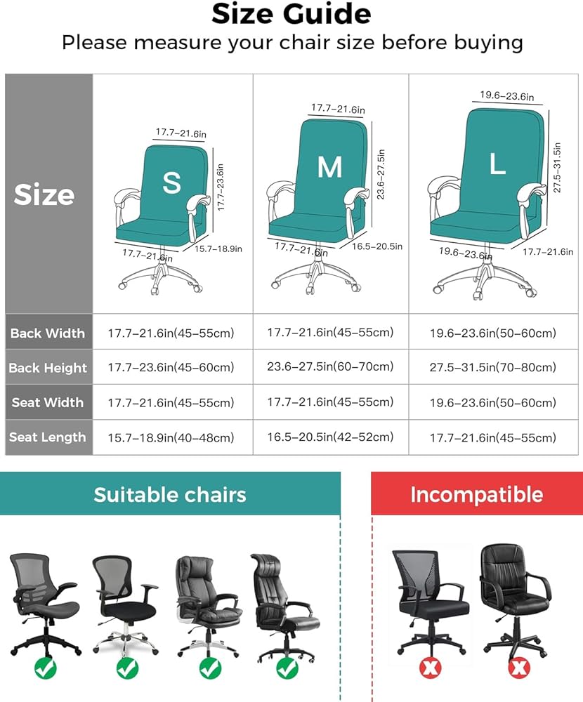 • Prefect Size: The office chair cover comes in size large, with 2 pieces armrest covers. Universal chair cover is suitable for most types of office chairs, gaming chairs, meeting chairs, home chairs, study chairs and so on. Package has 3 packs chair silpcovers, you can not only receive a zippered one-piece chair cover set, but also two gloves for chairs. We have detailed dimensions for you to check. You can contact us if you have questions about our office seat cover large by email at any time.