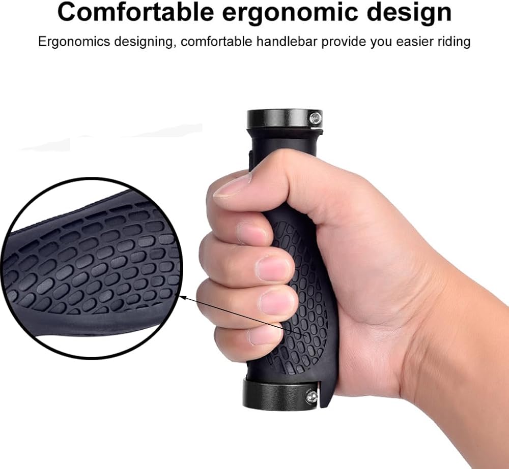زوجان من مقابض مقود الدراجة بقفل مزدوج، تصميم مريح، مقابض مطاطية واسعة ومقبض أسود للدراجات الجبلية MTB