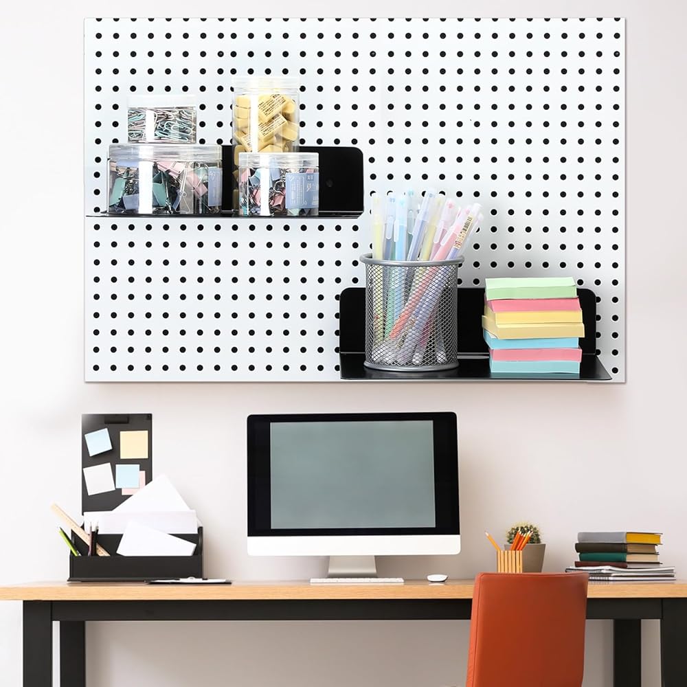 You can use magnetic peg board shelf to maintain a tidy living or working space. The compact design of these pegboard shelves makes them nice for under utilized spaces, transforming them into functional storage areas.