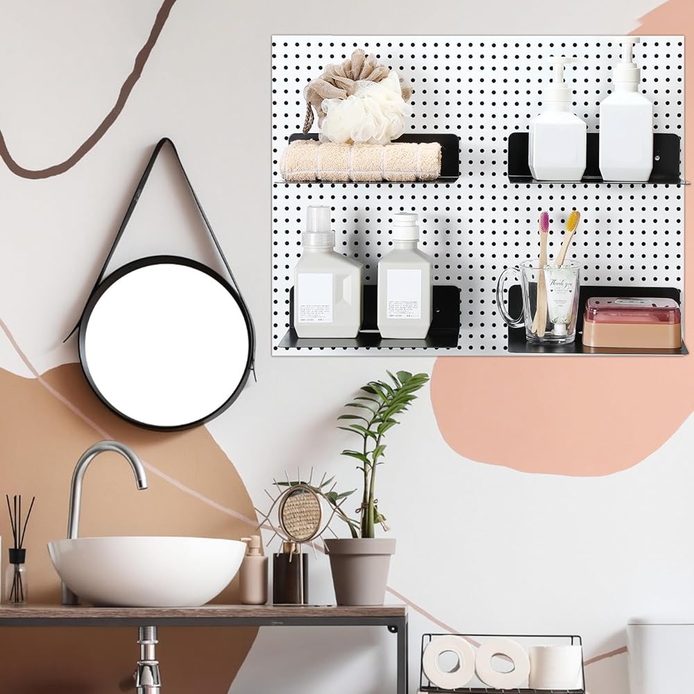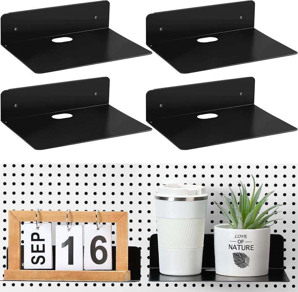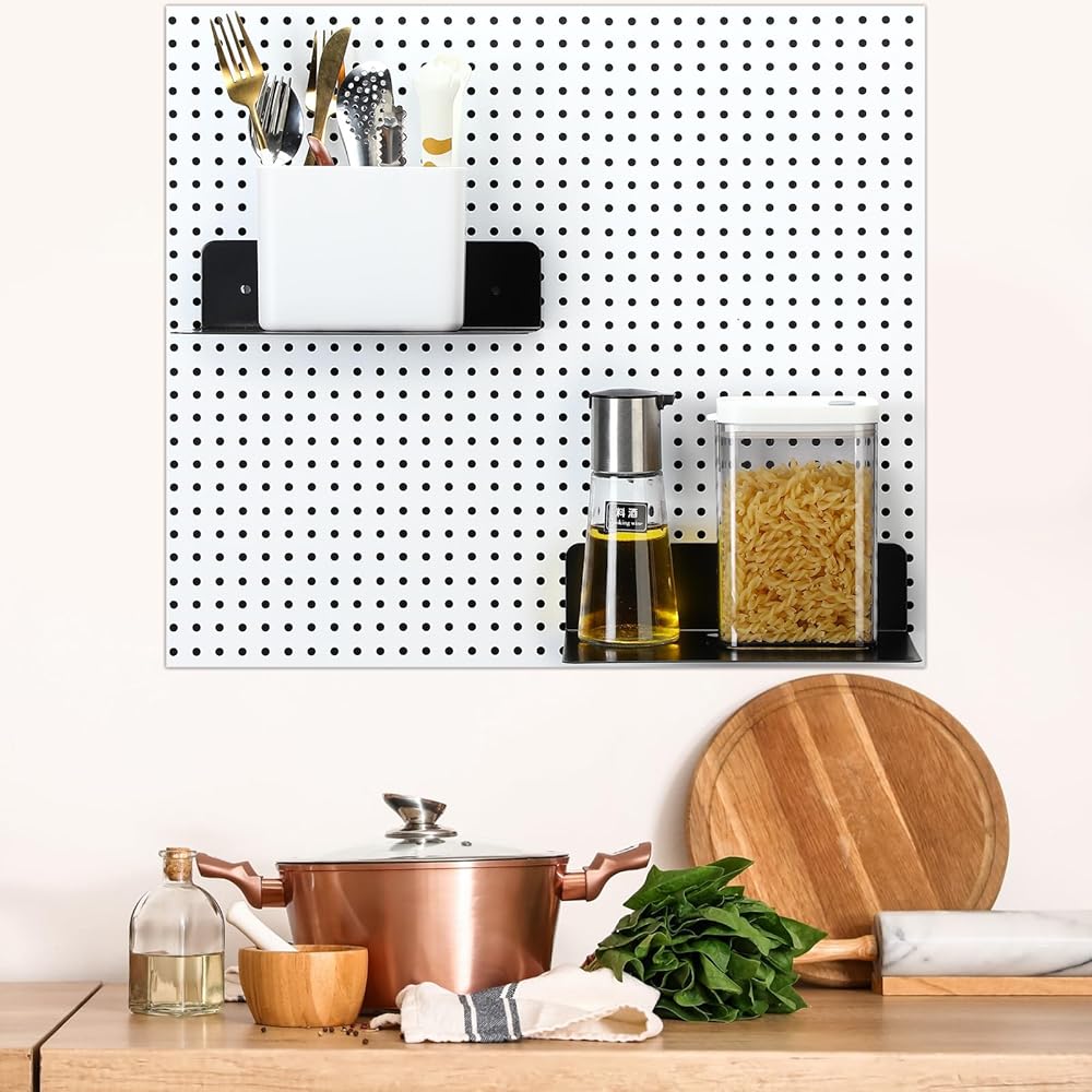Durable Material: the pegboard shelves are made from quality, thick metal steel; The matte black finish of the surface ensures maximum strength, rust resistance and anti corrosion capabilities; This results in a longer product lifespan and enables it to withstand heavy loads