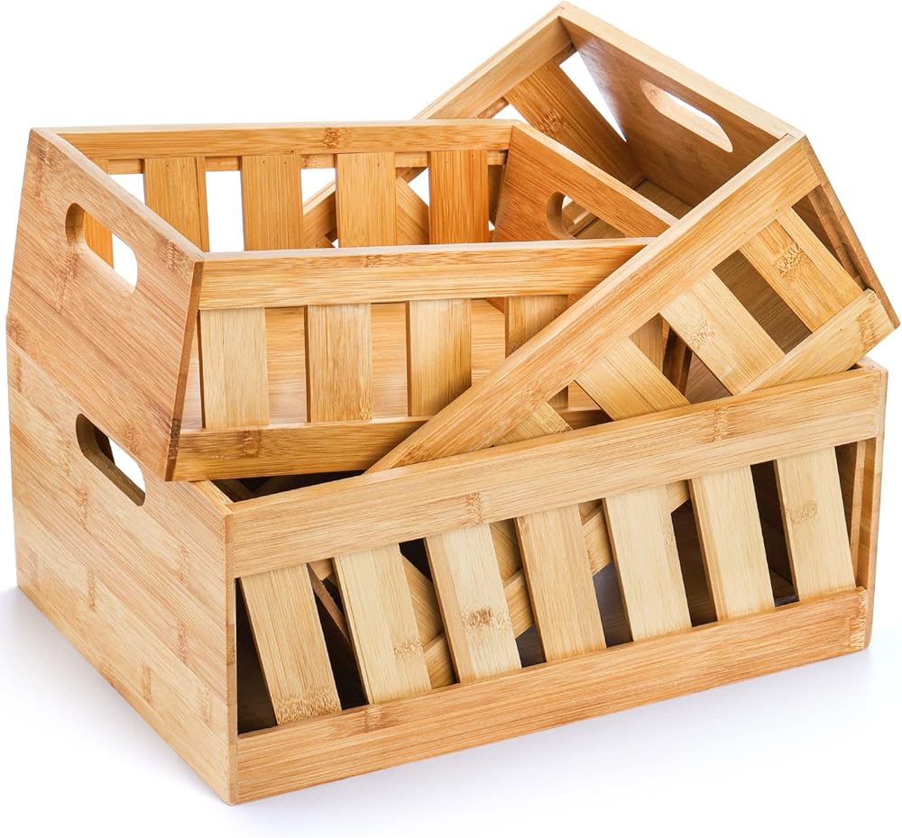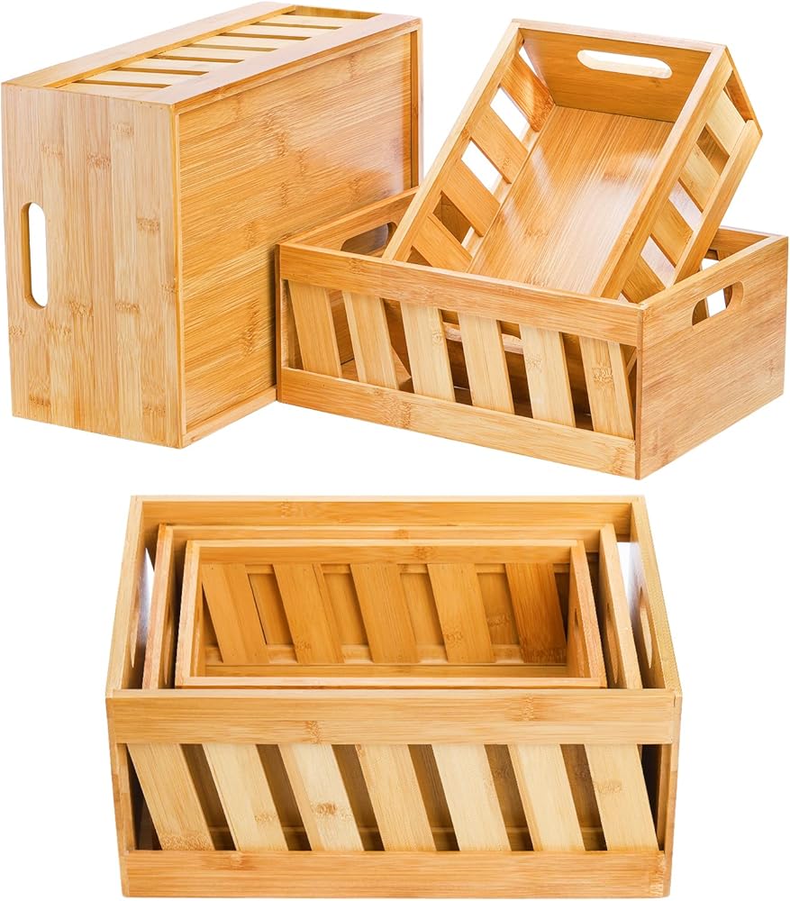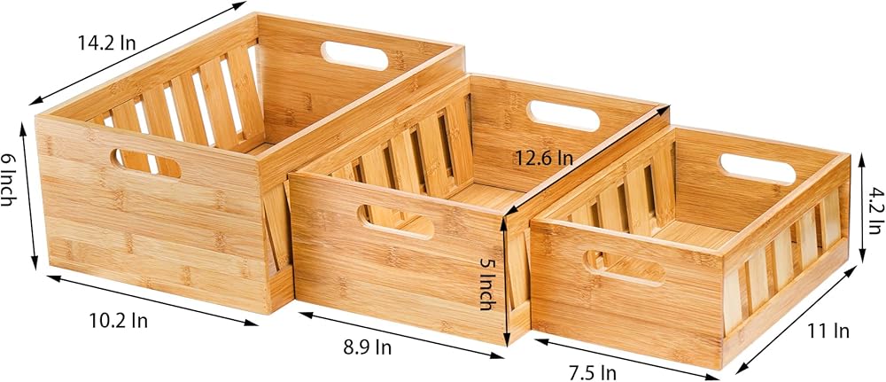 3 أحجام مختلفة من الصناديق الخشبية يمكن أن تلبي احتياجات التخزين المختلفة الخاصة بك وتحافظ على تنظيم العناصر. مثالية للفواكه والخضروات وأدوات المطبخ أو الحرف اليدوية والألعاب والمزارعين والأقراص المدمجة والكتب والفراش والمناشف وأدوات النظافة وما إلى ذلك.
