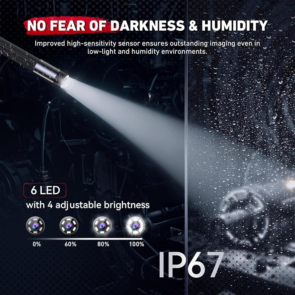 【كاميرا نطاق 8.5 مم مع 8 مصابيح LED قابلة للتعديل】قطر مسبار Ralcam borescope 8.5 مم/0.33 بوصة. كاميرا بوريسكوب مصنوعة من 8 مصابيح LED، سطوع قابل للتعديل يساعدك على رؤية تفاصيل أكثر وضوحًا حتى في البيئات المظلمة والرطبة