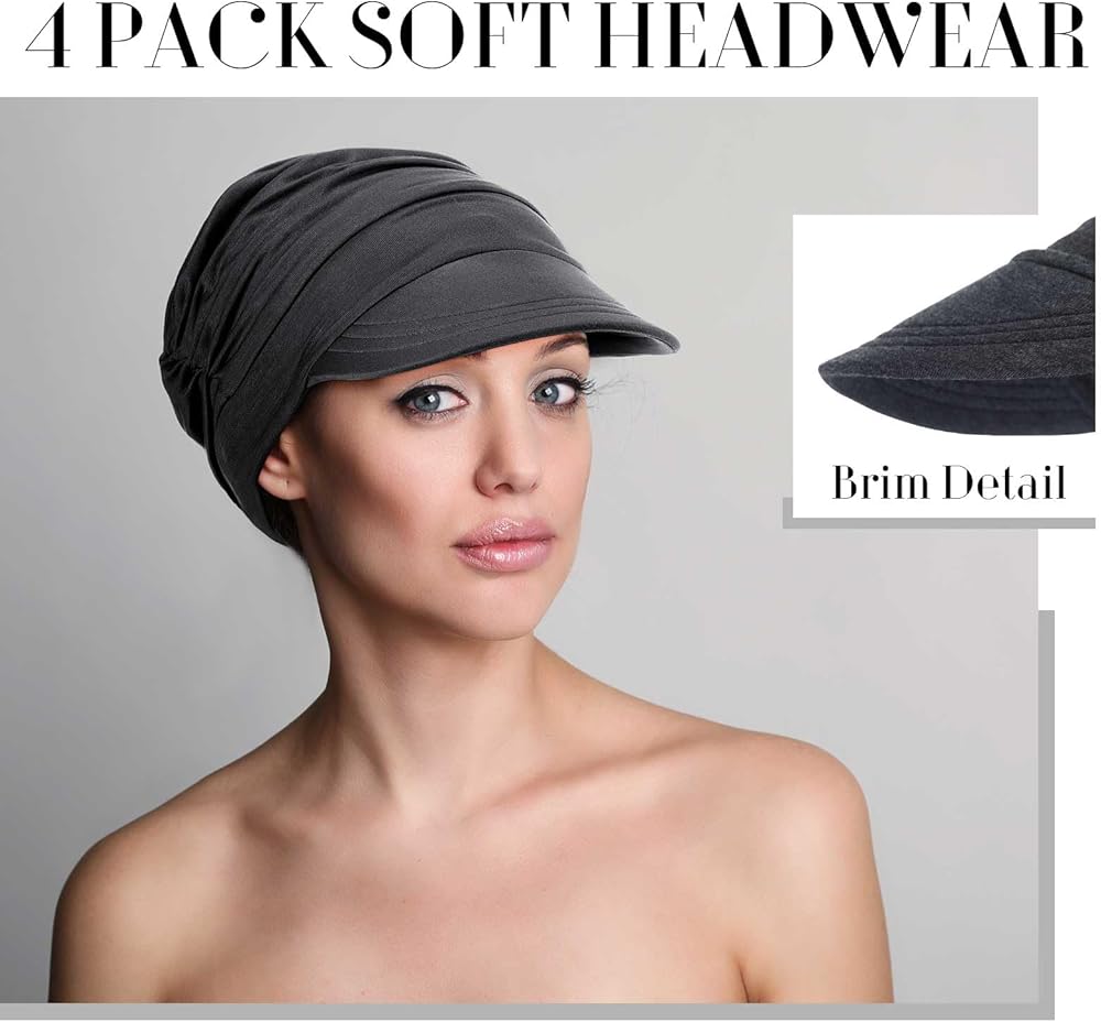 4 عبوات من أغطية الرأس الناعمة للسرطان للنساء، قبعات كيميائية للرأس، قبعات كيميائية، عمامة للحجاب، قبعة بيسبول، قبعة صغيرة مترهلة للمرضى الذين يعانون من تساقط الشعر