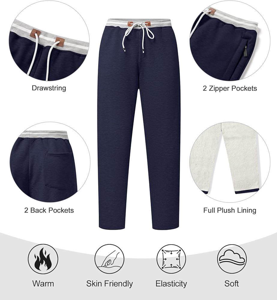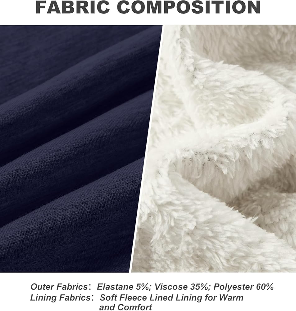 الراحة والدفء: بنطال رياضي من الصوف للرجال مصنوع من مزيج فاخر من الفيسكوز والبوليستر والإيلاستين. توفر السراويل المبطنة بالصوف نعومة استثنائية ودفء وتمدد لراحة طوال اليوم. توفر السراويل الشتوية للرجال عزلًا مريحًا دون التضحية بالتنقل.