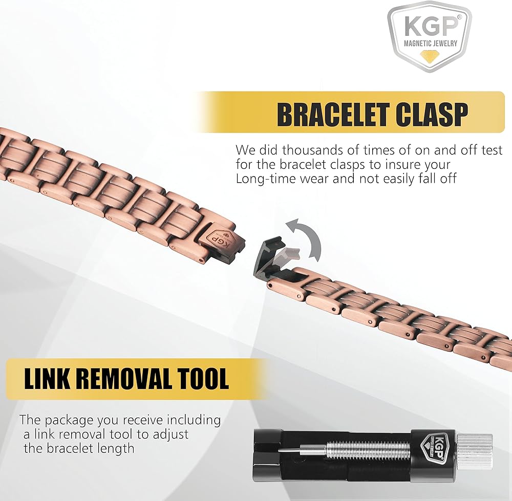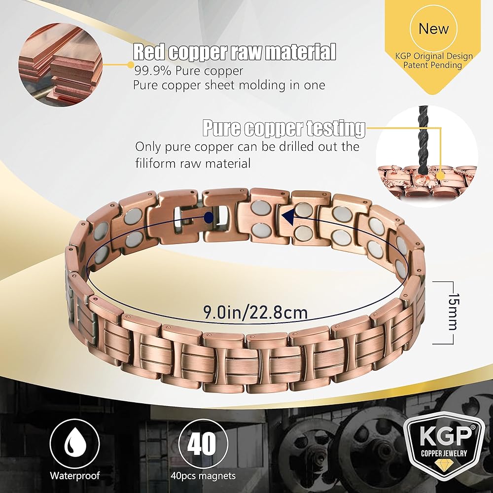 الهدية المثالية - مثالية للهدايا، سوار KGP النحاسي النقي للألم يأتي معبأ بشكل جميل في صندوق هدايا فاخر. هذا التصميم الفريد والعرض الأنيق يجعله خيارًا مثاليًا للمناسبات الخاصة مثل أعياد الميلاد واحتفالات الذكرى السنوية وعيد الميلاد وعيد الحب والمزيد. أظهر لأحبائك أنك تهتم بصحتهم ورفاهيتهم من خلال هذه الهدية المدروسة وذات المغزى.