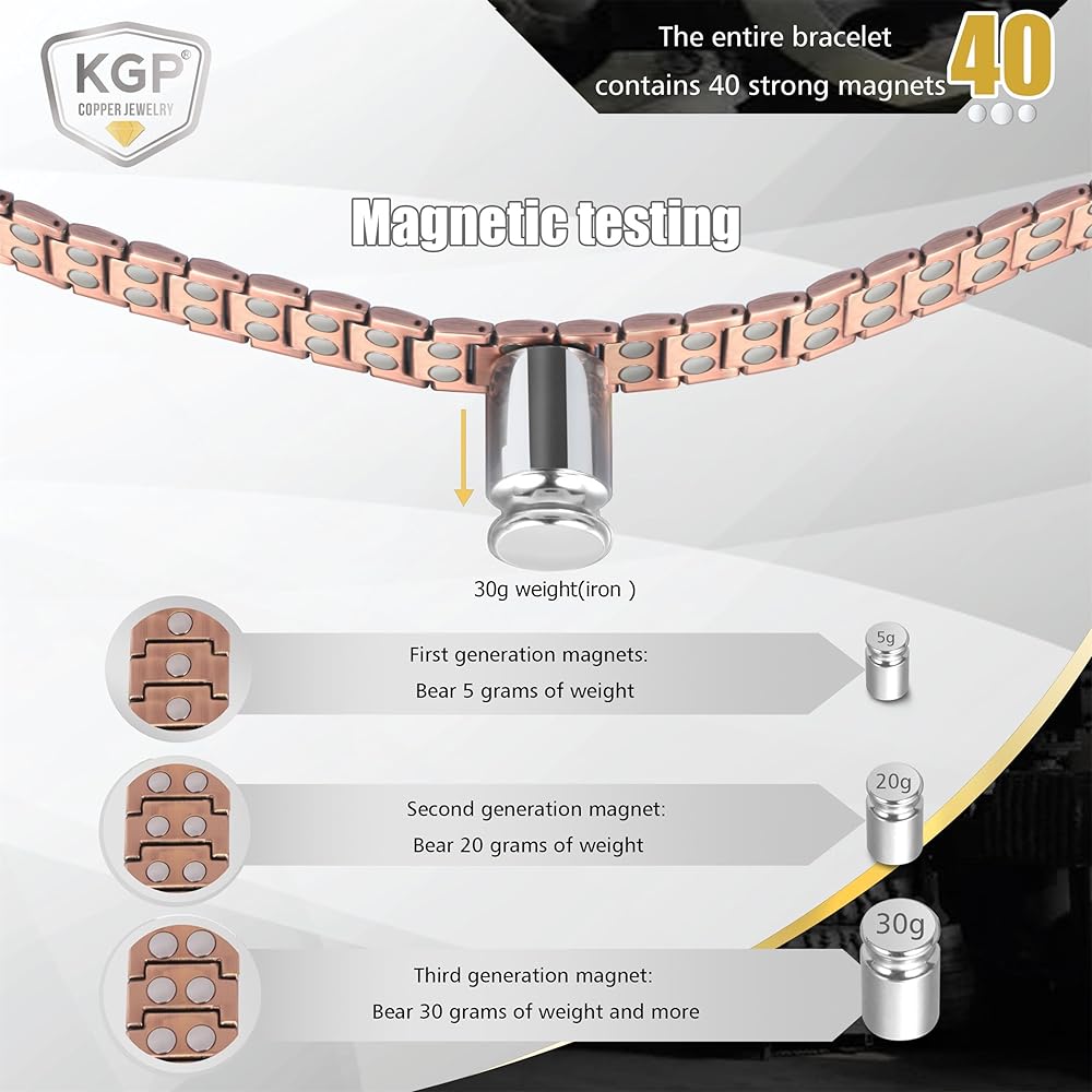 مجال مغناطيسي قوي - تم تصميم سوارنا النحاسي المغناطيسي القوي للنساء مع 40 قطعة من مغناطيس النيوديميوم القوي الكبير للغاية، ويضم ثلاثة مغناطيسات لكل رابط لإنشاء مجال مغناطيسي بقوة 3800 غاوس. إنه مفيد لتعزيز الدورة الدموية وتوازن النوم والنوم. توفير طريقة بديلة لتحسين الرفاهية العامة.