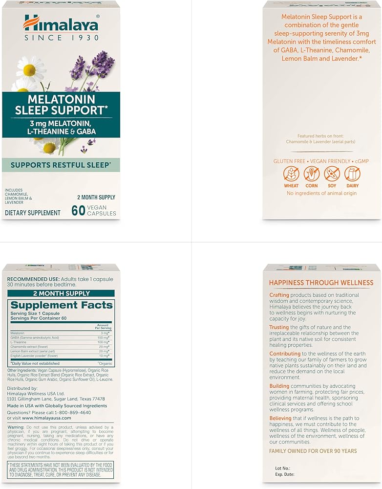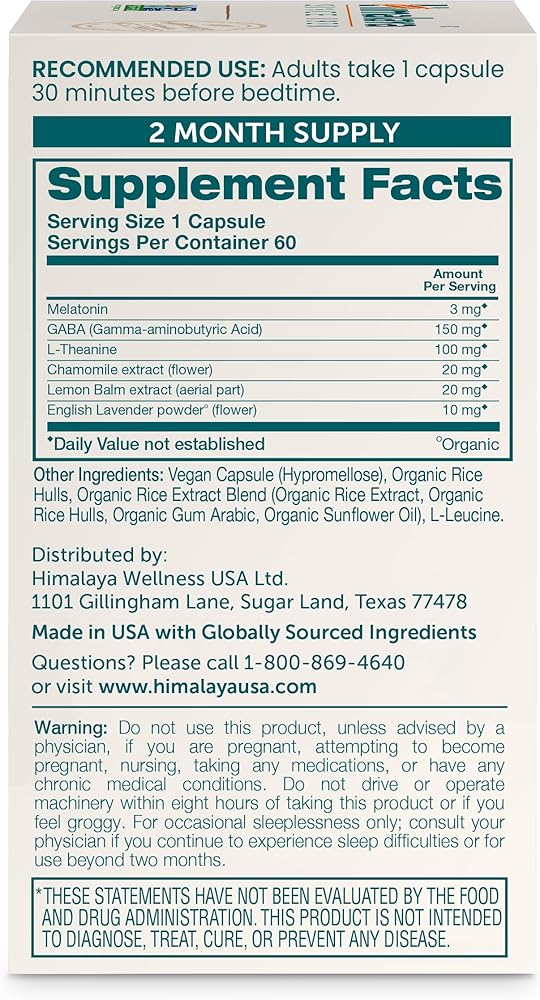 تركيبة قياسية عالية الجودة: تستخدم هيمالايا الميلاتونين، والجابا، والثيانين، والبابونج، واللافندر، وبلسم الليمون عالي الجودة الذي يجتاز اختبارات الهوية والفعالية والنقاء الصارمة. يتم إنتاج كل دفعة بنفس الطريقة، مع نفس المكونات عالية الجودة وبنفس التركيز لضمان اتساق عالي المستوى.