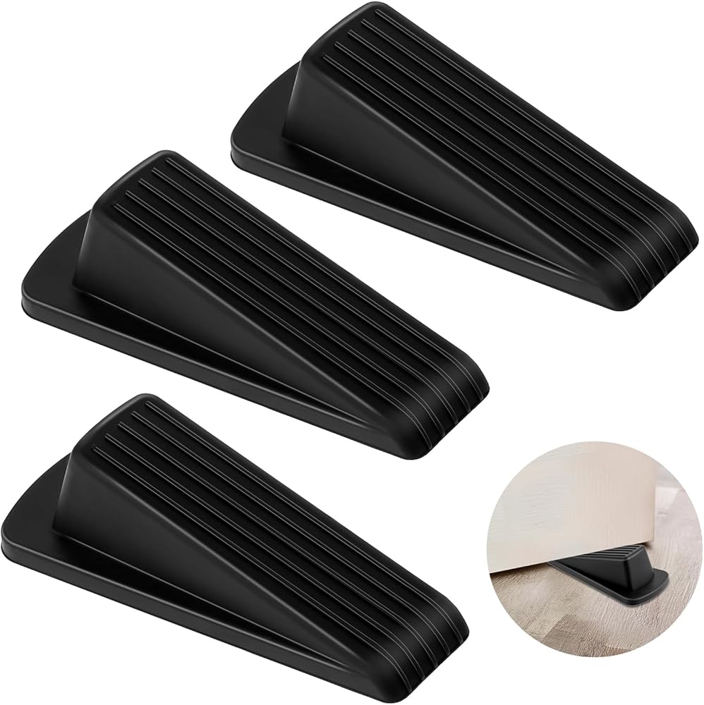 3 × Household Black Rubber Door Stoppers