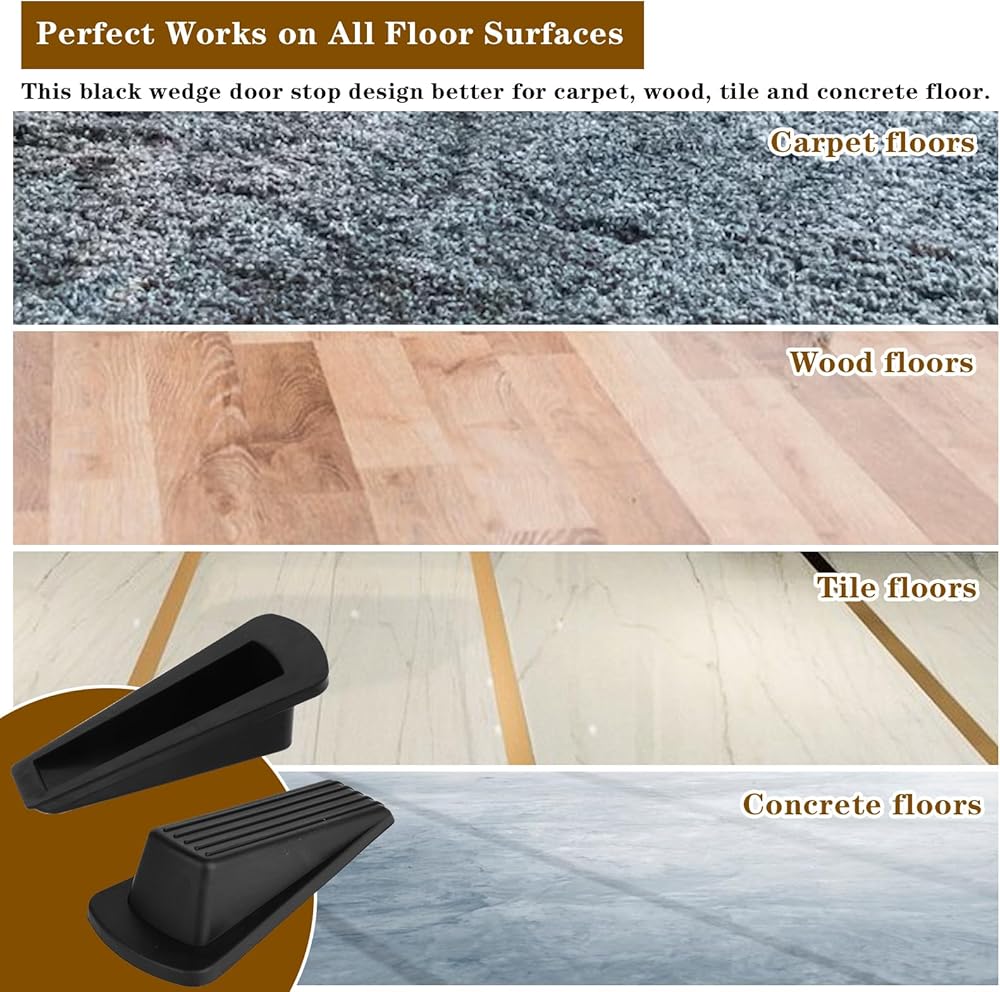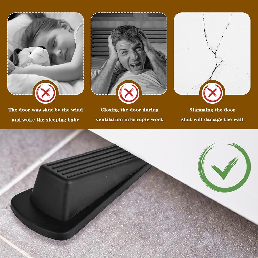【Safe and Convenient】These wear-resistant heavy-duty door stoppers protect your home or office walls and won't slide or get damaged even on industrial doors, which brings you safety; When using door wedge stopper, you don't have to do it every time Open and close the door, which brings you convenience. Door wedge are easy to install and remove, ensuring convenience and functionality.