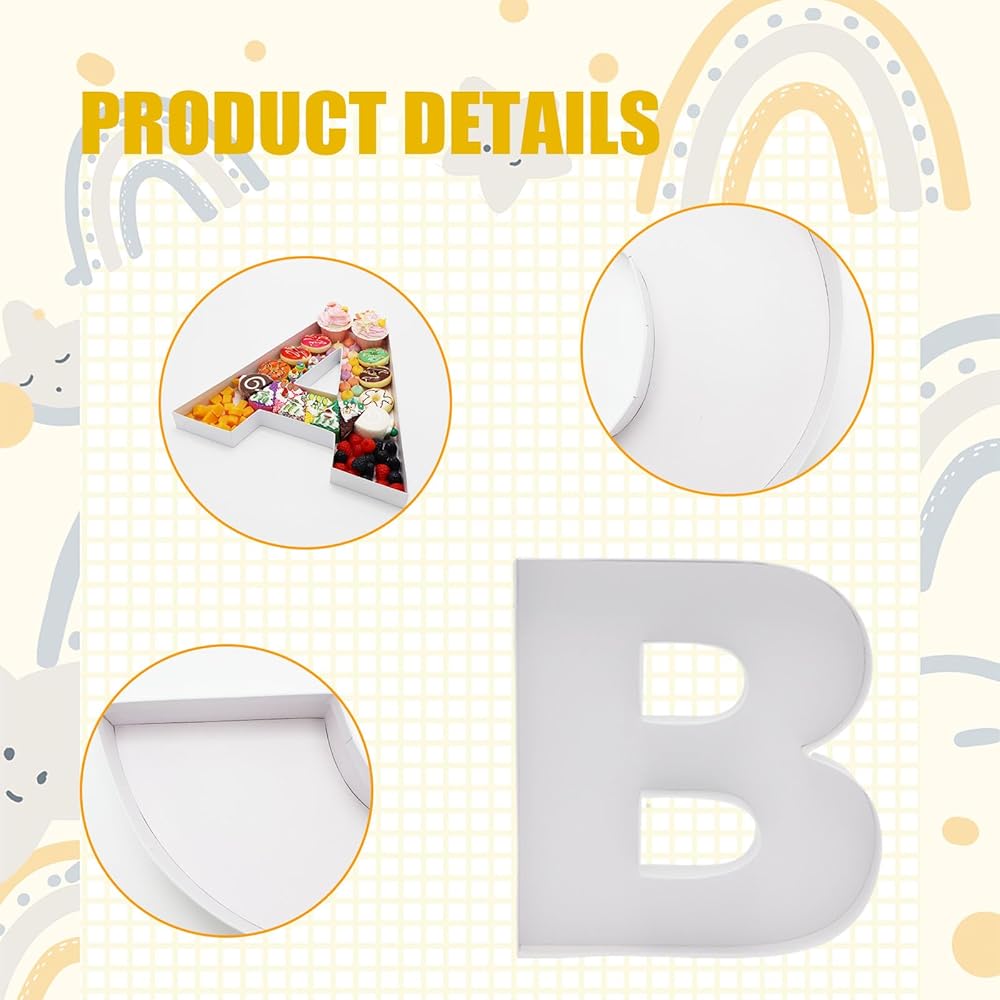 Celebrate your little one's arrival in style with this Large BABY Charcuterie Fillable Cardboard Letter! Standing at an impressive 15 inches (38.1 cm) tall, this decorative box is the perfect centerpiece for your baby shower or gender reveal party. Crafted from sturdy paper mache, it's designed to hold a delightful array of treats, snacks, and finger foods, creating a delectable and visually stunning display. Whether you're revealing the gender or simply celebrating the impending arrival, this fillable cardboard letter adds a touch of whimsy and personalization to your special occasion. Arrange it with your favorite nibbles, candies, or even small gifts, and let it steal the show as a conversation starter and memorable keepsake. With its versatile design, it can also be repurposed as a decorative storage box or planter after the event. Embrace the joy of welcoming your little one with this unique and functional party treat tray.