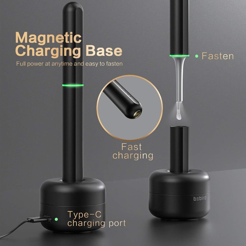 【تخزين قاعدة ثنائي الغرض】 - أداة إزالة شمع الأذن من بيبيرد مجهزة بقاعدة تخزين. يمكن استخدام القاعدة المغناطيسية لتخزين ملاعق الأذن المصنوعة من السيليكون والجهاز نفسه. الشيء الأكثر أهمية هو أن القاعدة يمكن شحنها مباشرة، وأن يكون تخزين القاعدة نظيفًا وصحيًا. كما أنه خيار جيد كديكور أو كهدية